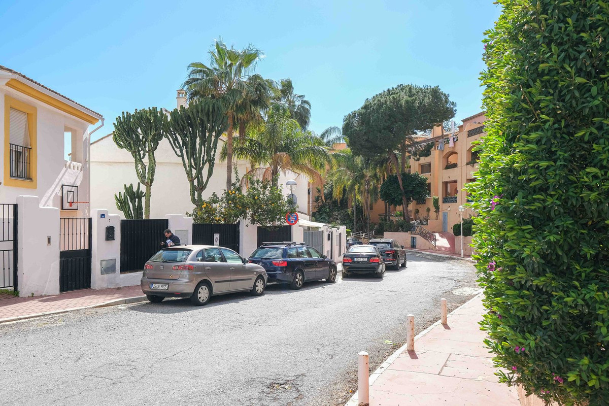 This beautiful family home has a built area of 155m2 + 60 m2 basement (total 215 m2) and a private plot of 198 m2, beautiful and well maintained community garden area with swimming pools for adults and children, The house comprisess of a spacious living room with balcony, kitchen and utility room, guest toilet and garage, upstairs 3 bedrooms and 2 bathrooms, one of the bedrooms has a en-suite bathroom with shower and toilet, two bedrooms have balconies, one has a french balcony, built-in wardrobes, lovely and beautiful open golf and gardens views, private courtyard with barbecue, lounge chairs and dining table, private garage and an additional parking space, close to the prestigious Miraflores Golf Course and Miraflores Tennis Club, two minutes driving to the beach, one minute driving to the amenities, supermarket, bars and restaurants.