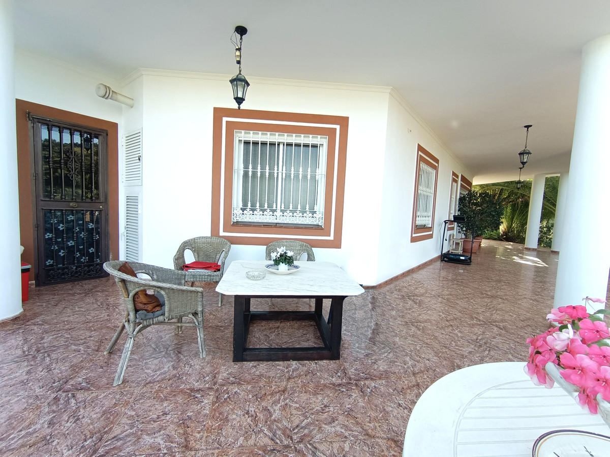 The villa is fully equipped with all services and supplies, with a large covered walkway around the villa that leads to the private swimming pool surrounded by palm trees, offering extra privacy. Inside there are 3 bedrooms, 4 bathrooms, large living room and kitchen - dining room. The property also has an independent garage with capacity for several vehicles.