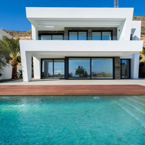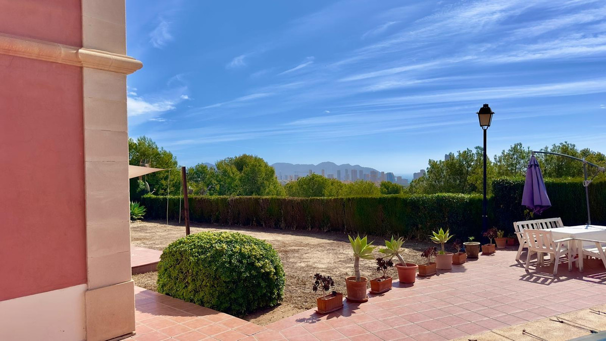 GREAT MEDITERRANEAN VILLA IN BAHIA FINESTRAT GOLF WITH VIEWS"Enjoy luxury and comfort in this spectacular 320m2 house, located in the prestigious area of Golf Bahía de Finestrat. Located on a 720m2 plot of land, this impressive two-story residence offers a perfect combination of elegance and functionality.On the ground floor, you will find a spacious living room with direct access to the garden, creating a bright and cozy atmosphere to enjoy with family and friends. The separate kitchen, also with access to the rear garden, has modern appliances and offers an ideal space for preparing delicious meals. In addition, on this floor there is a laundry room, a bathroom with shower and access to the garage for two cars.Going up the beautiful staircase to the second floor, you will find the four bedrooms, each with its own en-suite bathroom, offering privacy and comfort for all residents. Several terraces with views of the sea and the mountains complete this floor, providing spaces to relax and enjoy the impressive views that the surroundings offer.The house also has a large basement, ideal for use as a cellar, pantry or storage room, providing additional space for storage. The garden, with a large swimming pool, offers a perfect place to enjoy the Mediterranean climate and organize outdoor meetings.Additionally, the property is equipped with air conditioning to ensure comfort all year round. It is sold fully furnished and with appliances, ready for you to enjoy from day one.With its privileged location in the Bahía de Finestrat Golf area, this house is a unique opportunity for those looking for a luxury home in an exclusive and quiet environment."