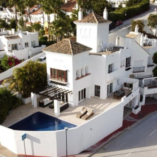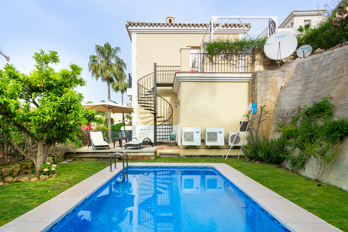 Up on the hill above Puerto Banús.....A wonderful and unique semi-detached house with a private pool overlooking the rolling hills of Stan with views to the Mediterranean Coast.