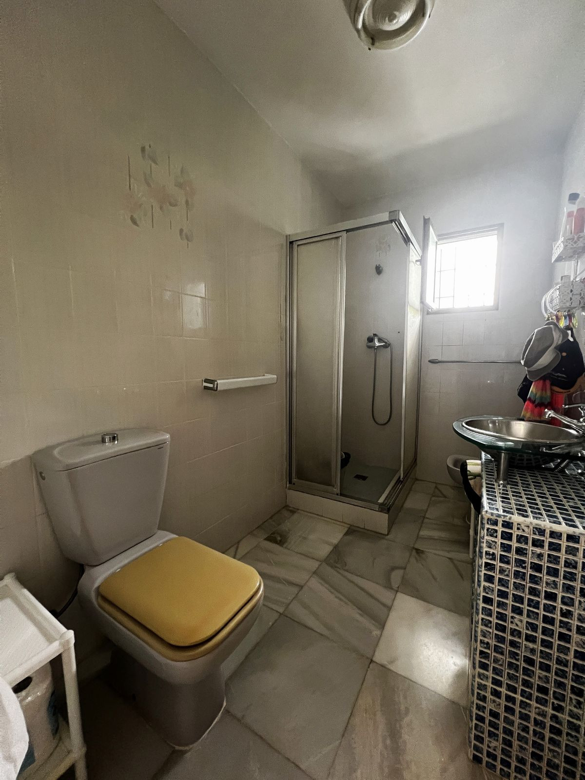 On the upper floor there are three bedrooms. The master bedroom is spacious, with a dressing room and private bathroom. The other two bedrooms share a bathroom. Also on this floor, there is a large terrace with sea views.