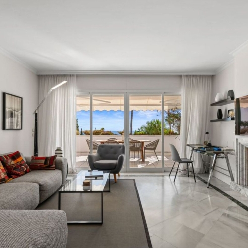 Exclusive opportunity! A stunning duplex penthouse with sea views, just a few steps from the beach in the prestigious Bahia de Marbella. Discover the charm of this property in one of the most privileged areas of Marbella. This property is distributed over two floors and offers an exceptional design and luxury amenities! On the main floor, you are welcomed by a spacious living-dining room that opens onto a sunny terrace overlooking the sea and the gardens, a fully fitted independent kitchen with modern appliances together with a laundry room and a guest toilet, complete this level. On the first floor is the master bedroom with a renovated en-suite bathroom and a private terrace offering stunning sea views, a perfect corner to enjoy the tranquility and beauty of the surroundings. In addition, two spacious bedrooms with fitted wardrobes share another large terrace with open sea and mountain views, along with a modern bathroom equipped with a shower. The property is equipped with hot/cold air conditioning to guarantee comfort at any time of the year. With an unbeatable location in an exclusive urbanisation with communal swimming pools and well maintained gardens. Walking distance to one of the best beaches in Marbella! Total built area: 140,28m2 Year of construction: 2002 Community fees: 220€/ month IBI: 1.200€.