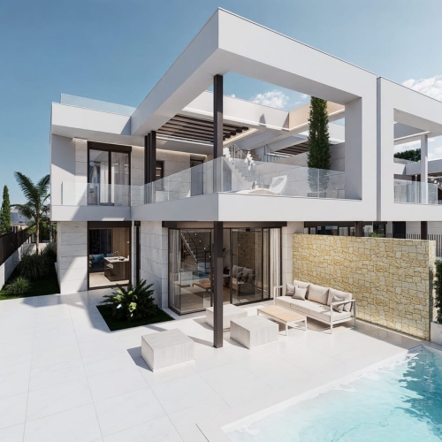 Nine exclusive 3-bedroom villas that combine modern design, quality and functionality. Its unbeatable location offers stunning views of the golf course and the Mar Menor.