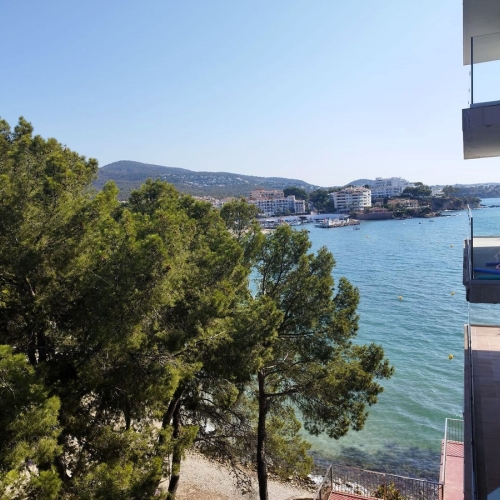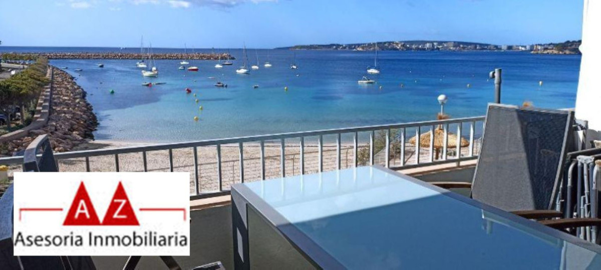 PUERTO PORTALS (MALLORCA)Front line apartment with pool and beach in a select area of Puerto Portals in Mallorca. It has two bedrooms and two bathrooms, large terrace with sea views, garage, south orientation.