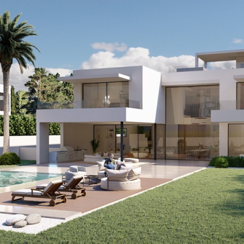 A new development of 52 townhouses, with 3 and 4 bedrooms on two levels, ground and first floor, with private garden, covered porch/terrace, pergola and two private parking spaces.