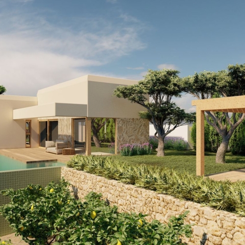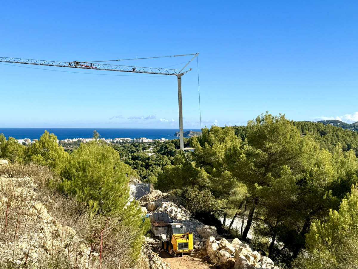 Work started, new project integrated into a natural environment, surrounded by green areas facing south and overlooking the sea.