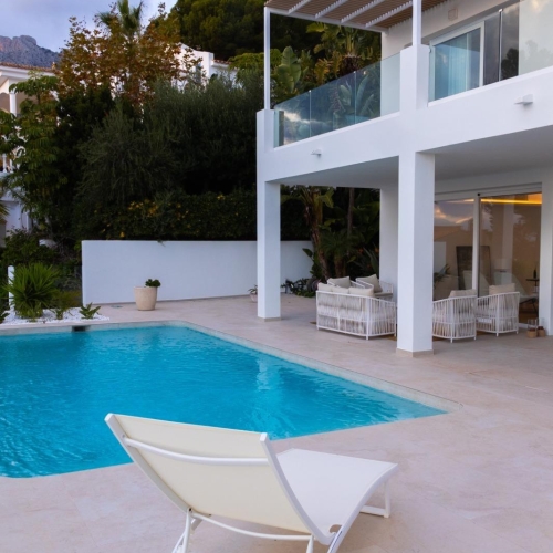 Luxury villa for sale in Altea Hills with incredible sea views. The total area of the villa is 413 m2, the land area is 979 m2. The house has four bedrooms, four bathrooms, central air conditioning, which works for heating and cooling, heated floors, a fully equipped kitchen, a designer garden, a large private pool, a terrace, a recreation area, two parking spaces, lighting of the territory. The villa is built to the highest standards of quality and taste. One of its main advantages is a breathtaking sea view. The villa is located in Altea Hills - one of the most desirable places to live on the Costa Blanca, where the entire infrastructure satisfies even the most discerning client.
