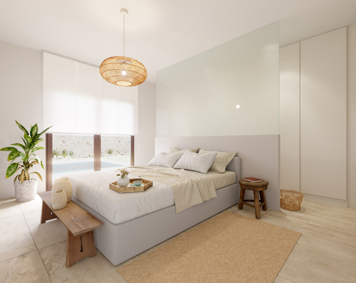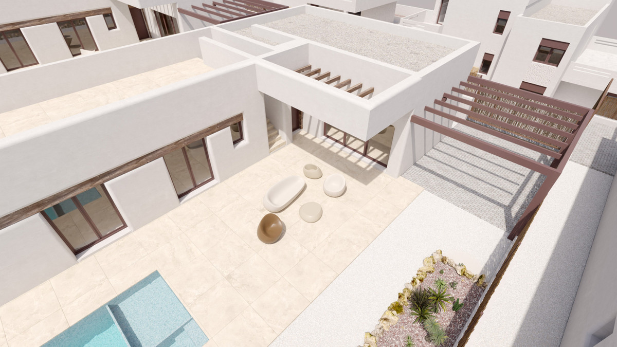 This new project comprises a total of 7 villas, each featuring 3 bedrooms and 2 bathrooms on the ground floor, a fully equipped kitchen, as well as a private pool, private parking, electric shutters, home automation system, pre-installation of ducted air conditioning, and LED lighting details both indoors and outdoors.