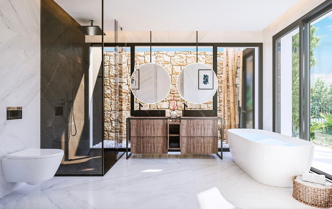 Villa for sale in , Estepona with 4 bedrooms, 4 bathrooms, 4 en suite bathrooms, 1 toilet and with orientation south/east, with private swimming pool, private garage (2 parking spaces) and private garden. Regarding property dimensions, it has 750 m² built, 1,418 m² plot and 210 m² terrace. Has the following facilities amenities near, air conditioning, central heating, fully fitted kitchen, storage room, gym, alarm, brand new, dining room, country view, mountain view, laundry room, covered terrace, electric blinds, fitted wardrobes, cinema room, close to sea / beach, close to golf, games room, saltwater swimming pool, close to shops and close to schools.