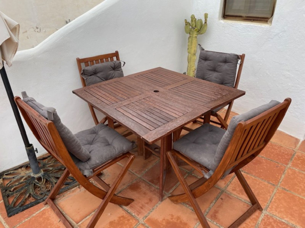 The house consists of a ground floor with a large spacious living room, kitchen, and one bedroom. On the first floor, we find a small area by the stairs with the possibility of having an office. Additionally, there is a bathroom and one bedroom with access to a large, lovely rooftop terrace and a fantastic view of the mountains and the Mediterranean Sea.