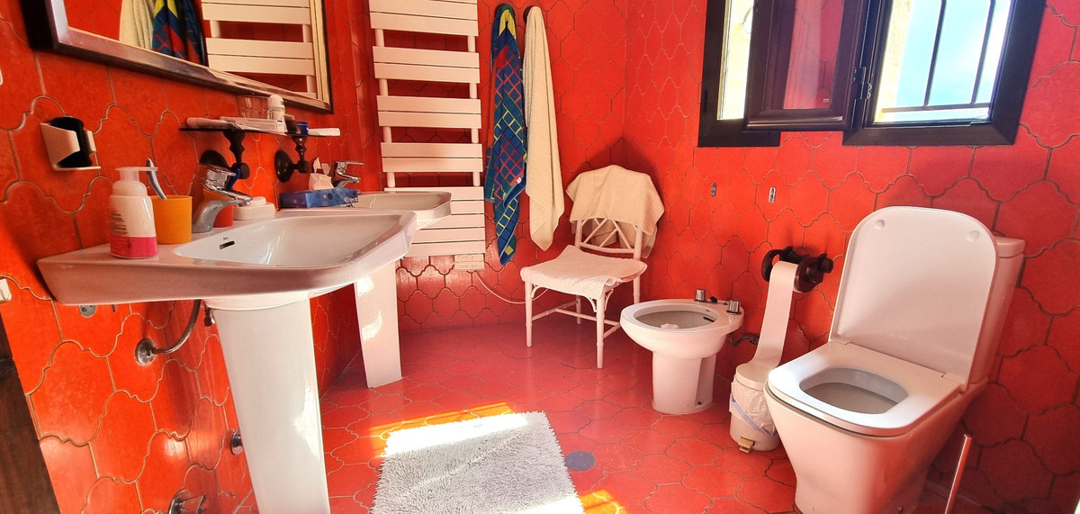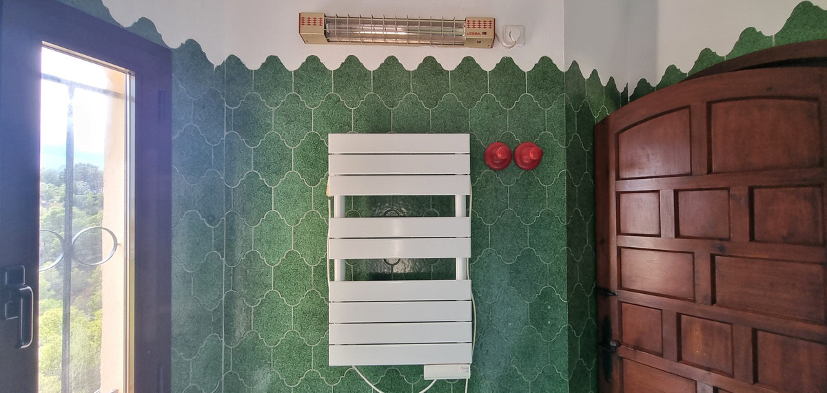 Heating consists of electric radiators supported by solar panels for energy efficiency and ceiling fans and has gas boiler. Furthermore, the house is equipped with alarm, has satellite connection and the garden is equipped with an automatic irrigation system.