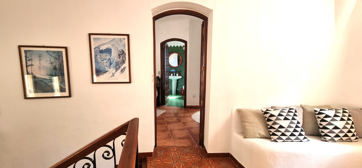Through a stylish staircase you go to the mezzanine of the second floor, with on both sides a bedroom with private bathroom. The mainbedroom has an own terrace with fantastic view.