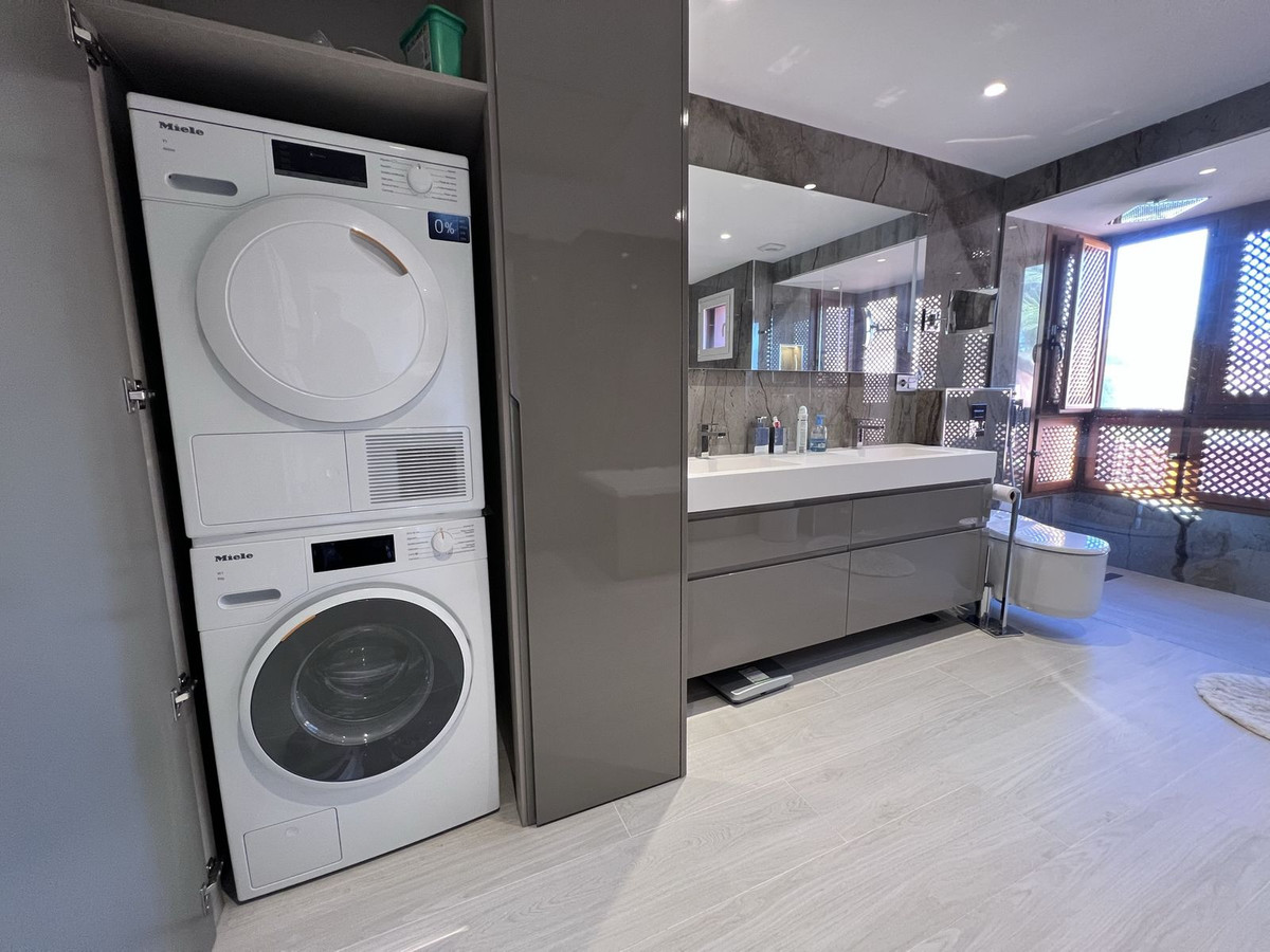 This penthouse has many luxurious features. Including Italian ceramics with the best faucets, toilets with smart mechanisms, Jacuzzi, New electrical system, New standard insulated windows that reduce energy consumption, Rooms with custom closets and modern open kitchen with German appliances and finally with unique furniture and luxurious features, this apartment offers an exceptional living experience with two separate parking spaces and two storage rooms.