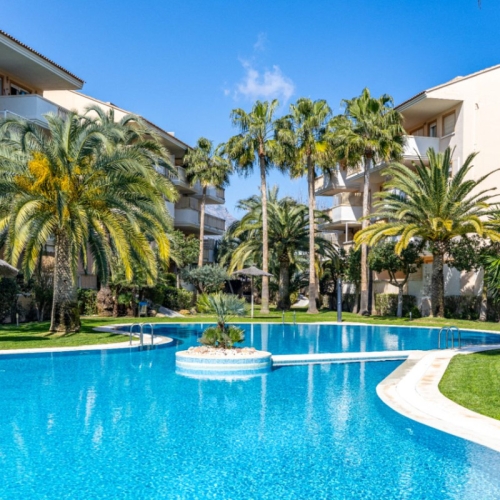 Located just a short walk from Javea's Cala Blanca, this exceptional 3 bed 3 bath ground floor duplex is ideal for full time living or to generate a rental income. The urbanisation is almost completely flat with a good sized communal pool and is within walking distance not only to the sea but also a supermarket, bars and restaurants and a pharmacy, and only a short walk or drive to the Arenal area.The property is entered into via a hallway, that due to its end of block location is flooded with light. To one side there is a fully fitted kitchen, a shower room and at the end of the hallway there is the staircase to the upper level and from here it opens to a bright living/dining room that not only features a window to one side, but also sliding doors to the terrace which is ideal for outside dining and which also gives access to the communal garden and has views over the pool. On the upper level there are 3 good sized double bedrooms all with built in wardrobes. The master bedroom has an ensuite bathroom while the other two bedrooms share a separate bathroom.This property benefits from a large parking space in the underground garage and a good sized storage room adjacent to the parking.
