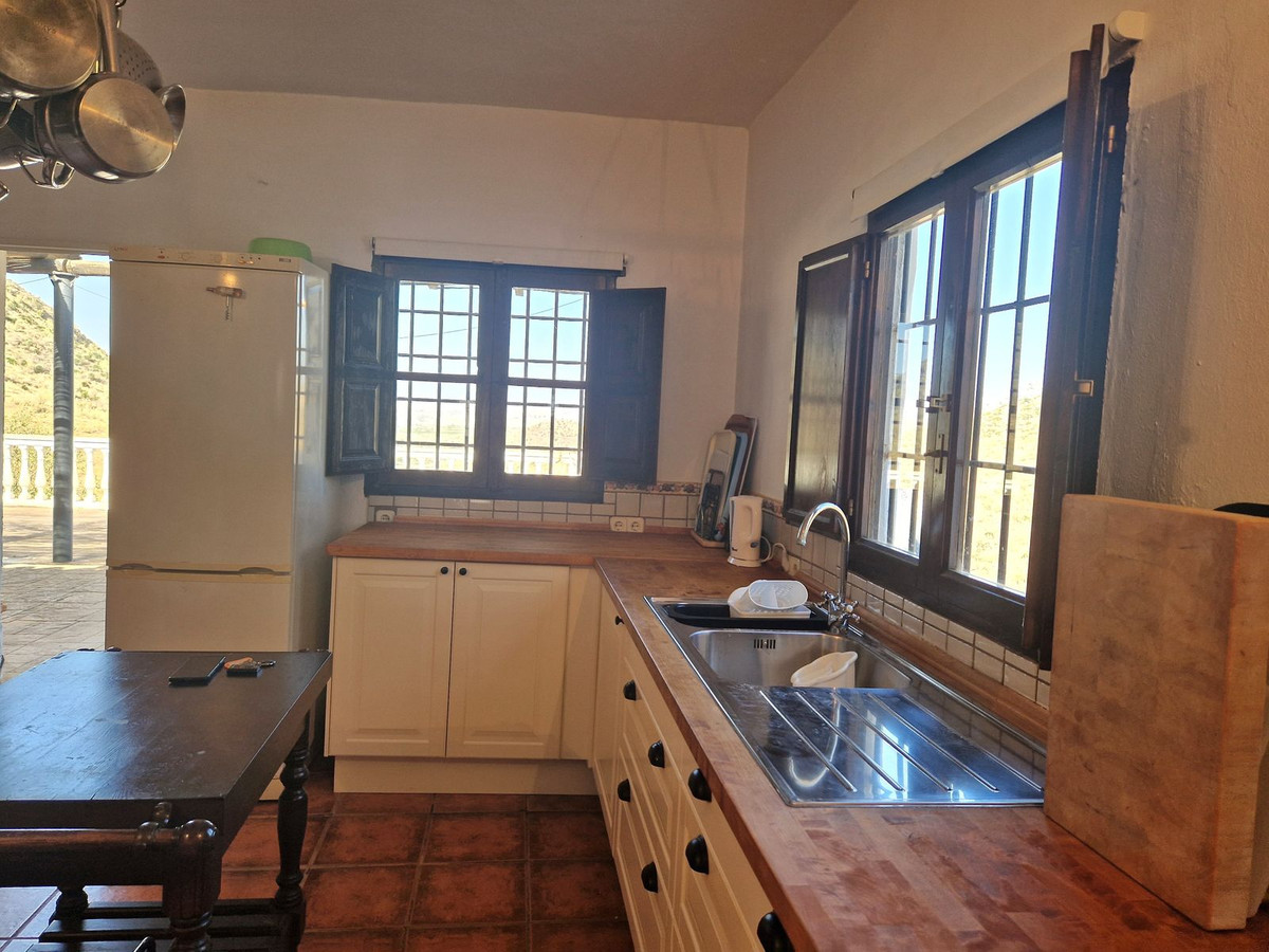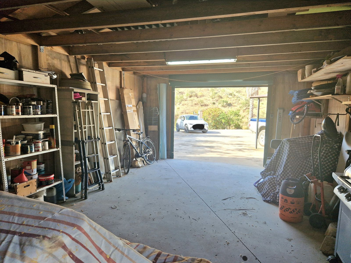 It has its own terrace "in between" the annex and the main house. The independent apartment has a kitchen a bathroom and bedroom. There is a seperate carport and a very big garage / annex workshop. The views from the terrace are amazing and it is very private and quiet, except the fact that it also can be in the flight path of Malaga airport.