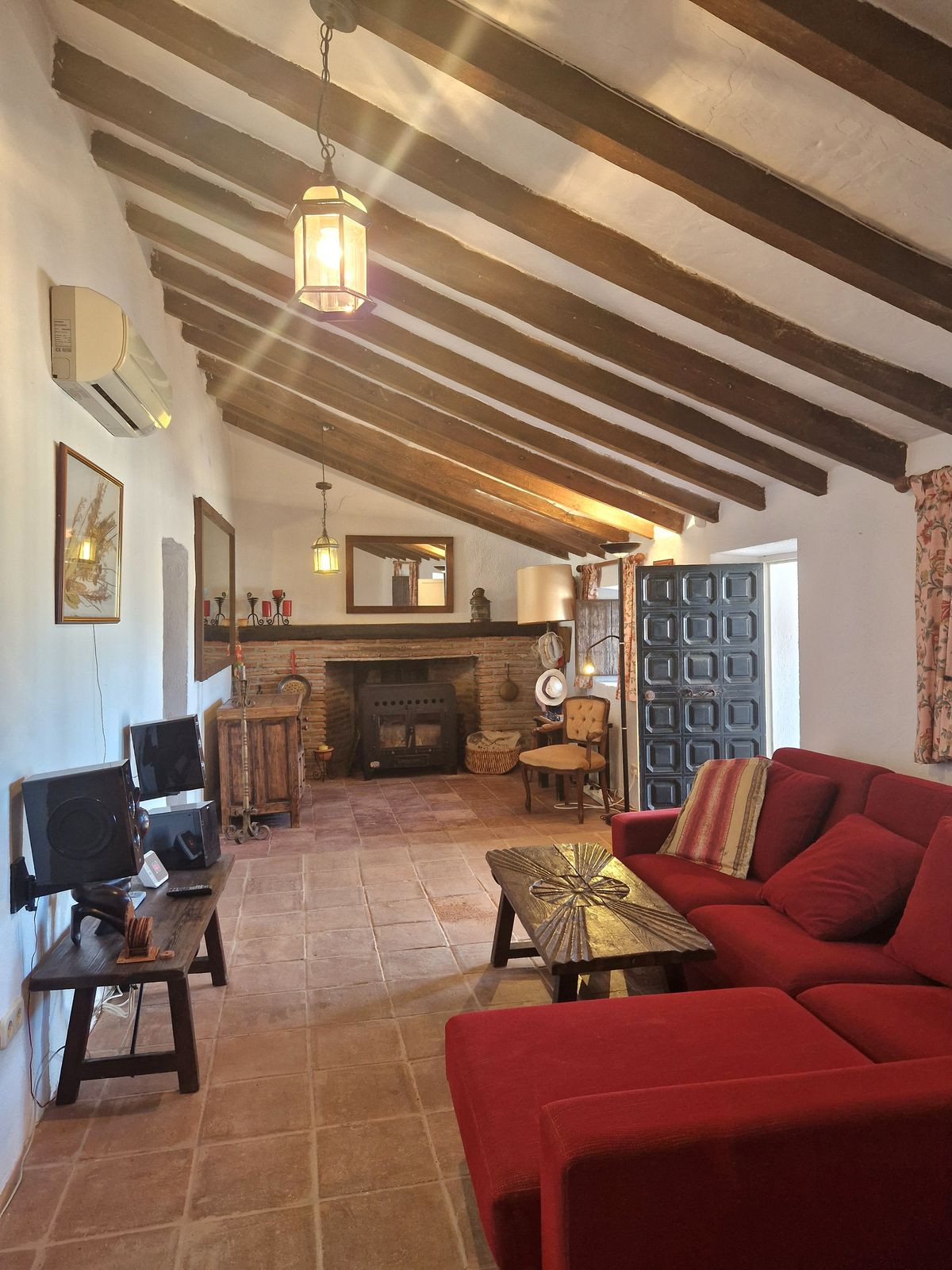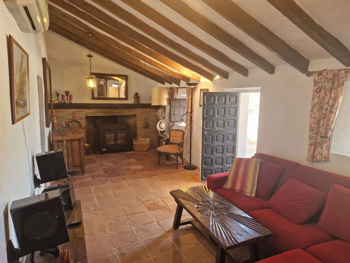 The living room has a traditional feel to it and has a big working fireplace and air conditioning. From the living room you have access to two bedrooms and to the large terrace over looking the valley and the surrounding mountains.