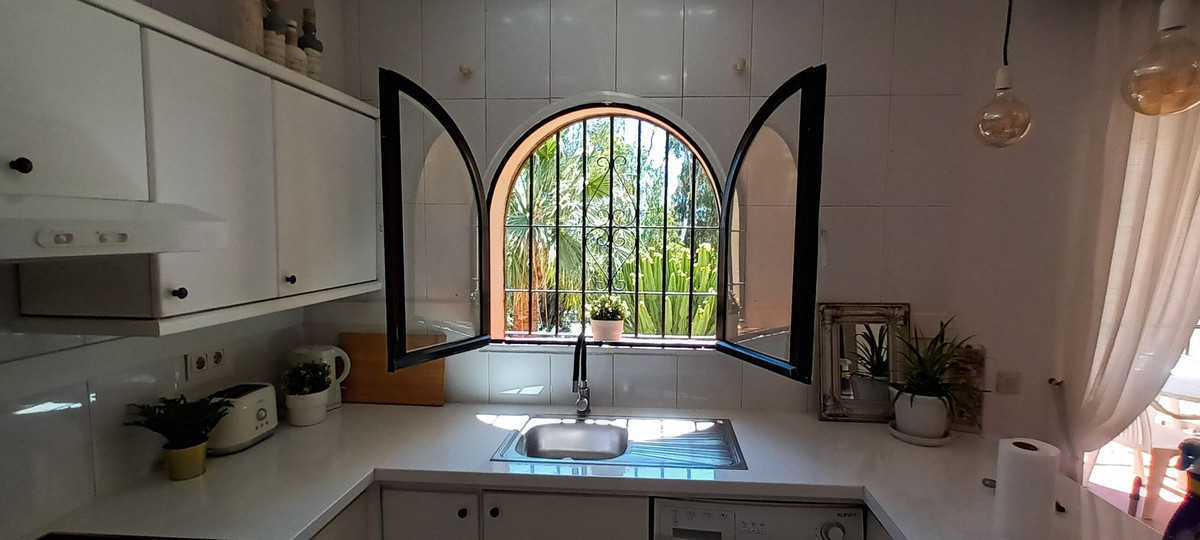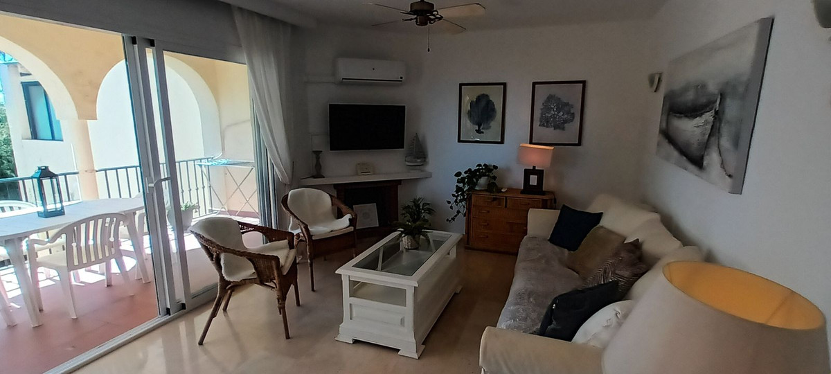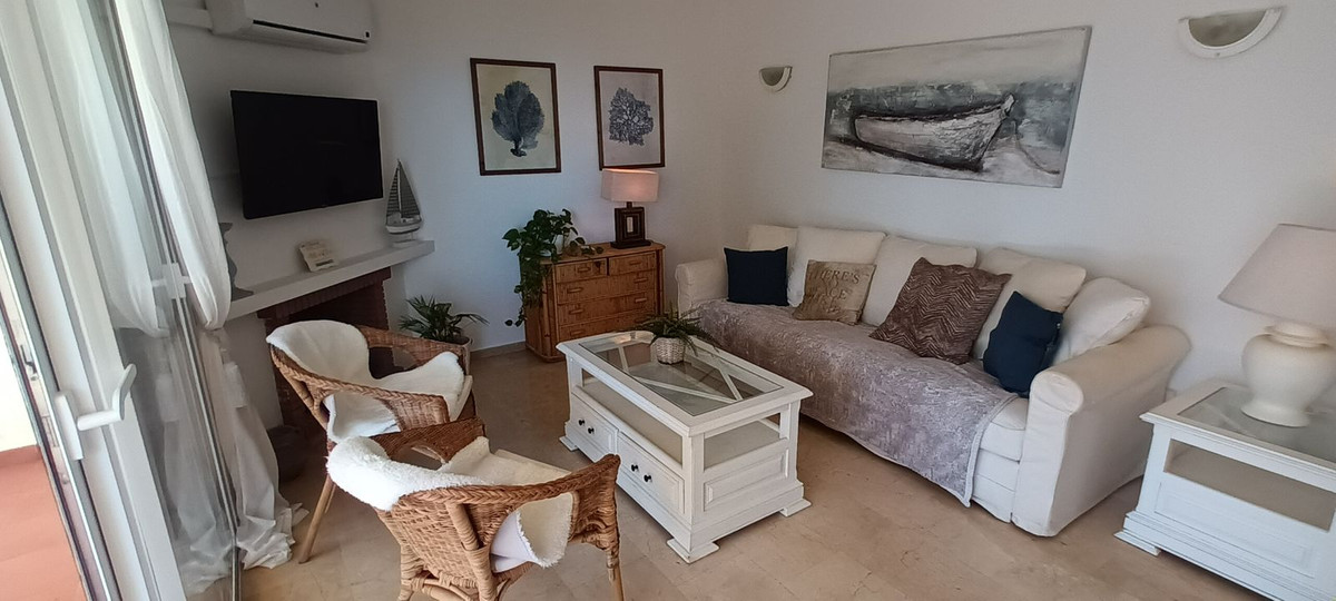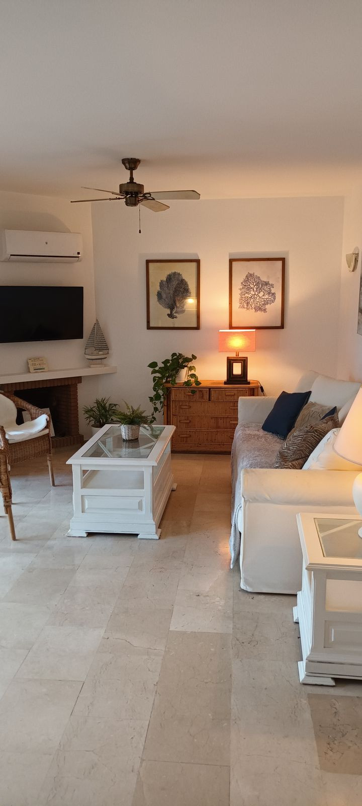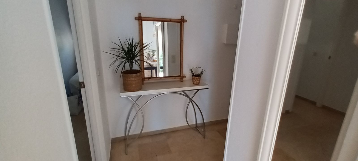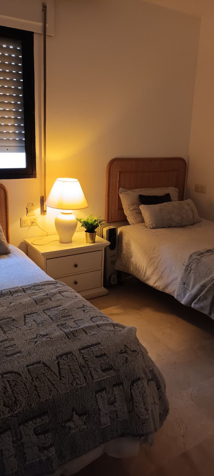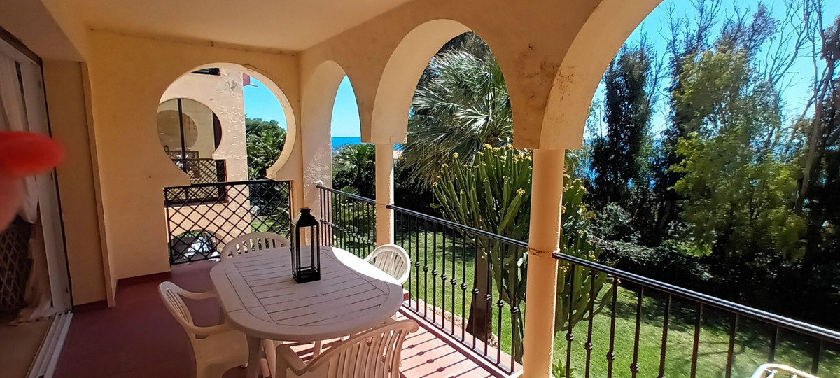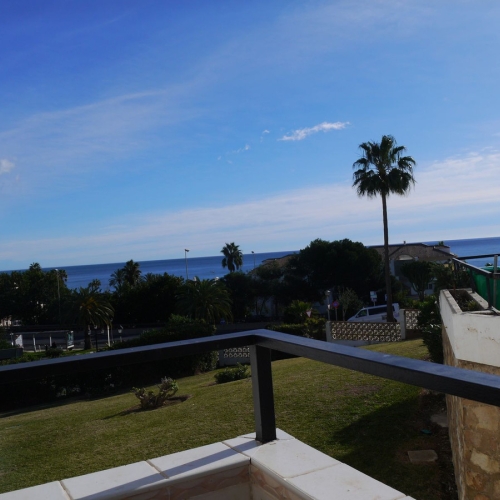 Recently renovated 2 bedroom, 2 bathroom apartment right by the beach. Perfect for holiday rentals or for living in a privileged area by the sea. Just a 2 minute walk to the beach/boardwalk through a private pedestrian tunnel from the communal gardens/pool. The apartment features a spacious living/kitchen area that opens onto the terrace with sea views. 2 double bedrooms and 2 bathrooms. Very well-maintained communal areas with 2 pools (1 for children) and private outdoor parking. If you feel like dining or having breakfast on the beach, you can head down to "El Oceano Beach Hotel and Restaurant" right next door, or to the nearest beach bar, which is a 5-minute walk away."