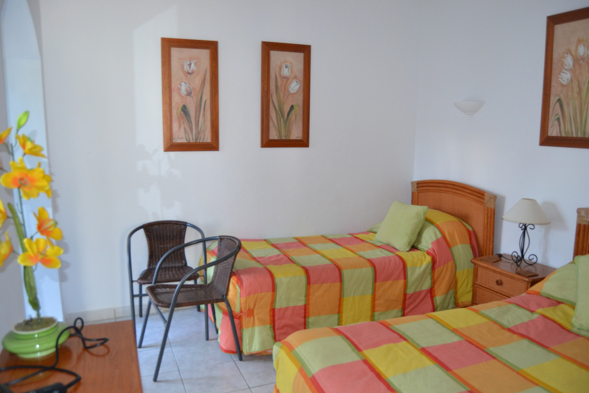 Inside, the large lounge with an open fireplace opens onto a front terrace that offers views of the pools and garden area, which lead directly to the beach. The apartment includes two double bedrooms with en-suite bathrooms, and the roomy lounge can easily accommodate a sofa bed for extra guests.
