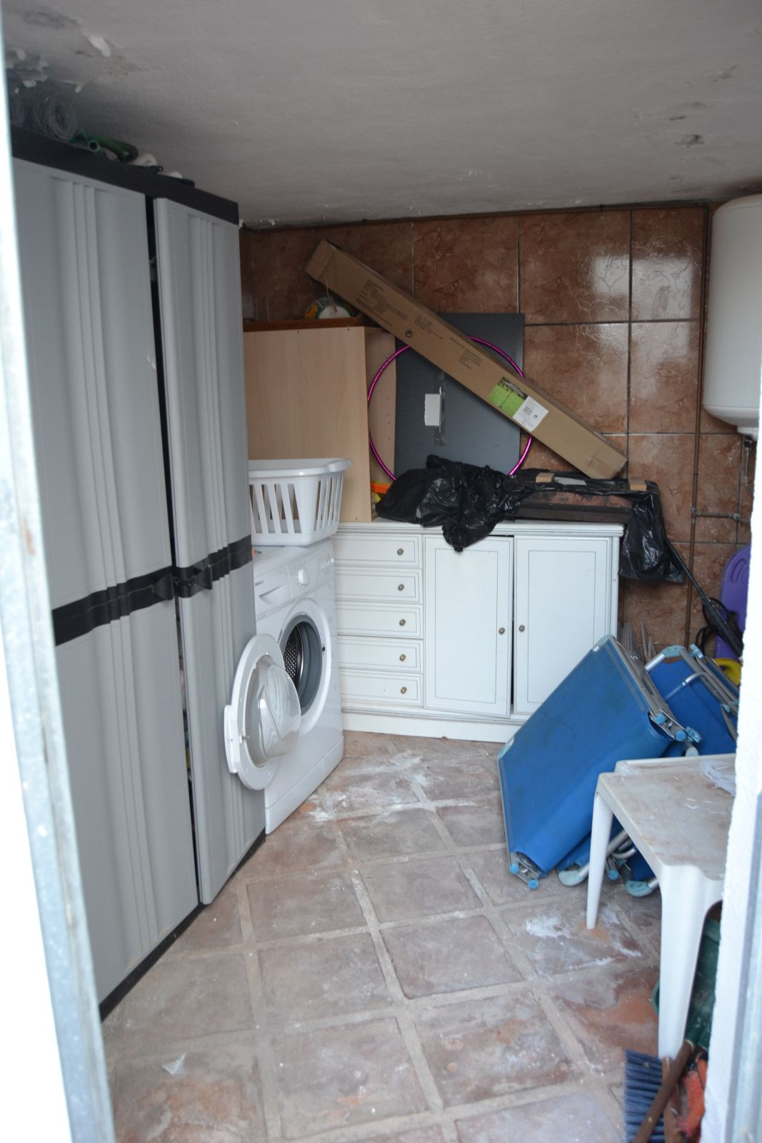 This fully furnished apartment boasts expansive outdoor space and a generously sized living area. The gated entrance leads to a spacious double patio, perfect for BBQs, dining, and sunbathing. The patio also features a large storeroom with plumbing for a washing machine.