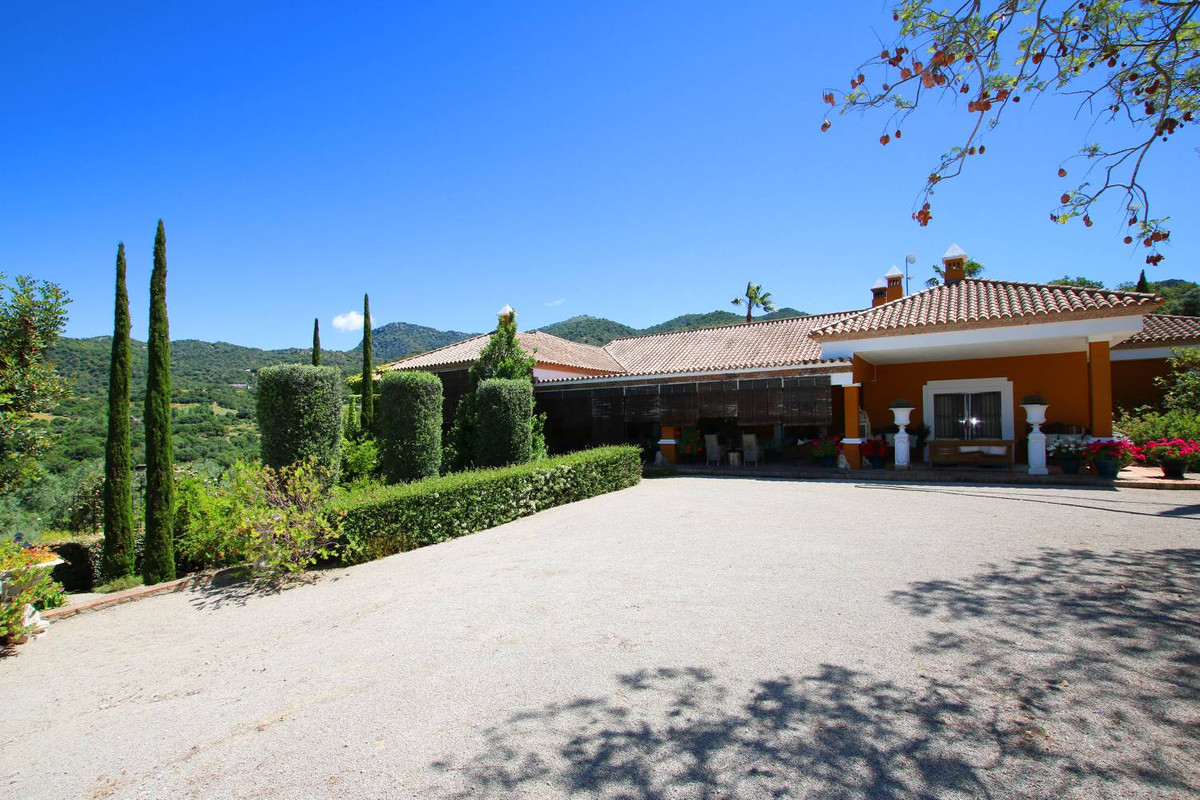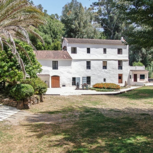 Stunning Country Estate for Sale Near Gaucín, Malaga, Andalusia, Southern Spain\n\nExperience the essence of Andalusian luxury at this exquisite cortijo, set amidst the serene countryside near Gaucín. This exceptional property comprises a main cortijo and a separate guest house, offering privacy, tranquility, and an authentic Andalusian lifestyle. The principal residence features 4 bedrooms and 5 bathrooms, while the guest house, which is set well away from the principal house , has 3 bedrooms and 2 bathrooms. Situated on a vast 13.7-hectare estate, the property boasts its own private olive grove, small vineyard, fruit orchards, and stunning views of the Alcornocales Natural Park.\nThe principal Residence : 711m2 built area \nA masterpiece of traditional Andalusian architecture, featuring original wallpapers by renowned French designer Christian Lacroix, with matching fabrics that create a vibrant, colorful interior reflecting the tropical flowers and citrus trees surrounding the estate.\nKEY FEATURES\n \nPrivate Master Bedroom suite with his and hers bathroom, walk-in dressing rooms located in a separate wing of the house \nThree fabulous guest suites , each built around the Andalucian internal Patio with water feature . Each with a private terrace and en suite bathroom \nStriking salon with double vaulted wood beamed ceiling with several sets of french windows opening out onto a fabulous exterior covered terrace .Magnificent formal dining room \nA truly unique kitchen designed for entertaining , the kitchen is stylish and contemporary yet manages to retain the warm the charm of a much more traditional kitchen . Incorporated dining area and direct access out to a West-facing covered dining terrace. \nA charming 200m2 patio courtyard with lemon trees and a covered easting area welcome one into the house\nA 100 m² covered terrace leading to a secluded swimming pool and beautifully landscaped formal gardens with roses, bougainvillaea, agapanthus, and more\nBasement: The 190 m² basement includes an additional staff bedroom and bathroom, a 2-car garage, and numerous rooms currently used as storerooms, with potential for conversion into a gym, home cinema, indoor pool, or full staff quarters\nGuest House\n\nThe 96 m² guest house offers comfortable and stylish accommodation, perfect for visitors or extended family.\nThree bedrooms , 2 bathrooms . An open-plan living, dining, and kitchen area.\nOutdoor Spaces: A private terrace with stunning countryside views. Possible to build a 2nd pool\n\nOutdoor and Agricultural Features\n\nThe estate is not only a luxurious residence but also a productive hobby farm with various agricultural features:\n-Olive Grove:** Approximately 650 Arbequina olive trees producing high-quality extra virgin olive oil.\n-Fruit Orchard:** Around 100 avocado trees, various citrus trees (orange, mandarin, grapefruit, lemon), quince trees, and a vineyard for table grapes.\n-Land Potential:** The 13.7-hectare estate offers multiple opportunities for further agricultural development, including the potential for a larger orchard or vineyard.\nAmenities and Utilities\nWater Supply The property has its own water supply from a natural spring, ensuring a constant and abundant water source.\nElectricity and Heating:Connected to mains electricity with heating provided by several fireplaces and gas radiators in all bedrooms. Water heating is also gas-powered.\nInternet: Reliable WiFi connection available.\nLocation and Lifestyle\nLocated just a 10-minute drive from the cosmopolitan village of Gaucín, the property offers easy access to outstanding restaurants, a vibrant social life, and a thriving artistic community. \n\nProximity to Amenities:\n- Gaucín: Known for its artistic heritage, Moorish castle, and annual Art Gaucín event.\n-Beaches and Schools: 40 minutes from the beach and Sotogrande International School.\n- Golf Courses: Close to famous golf courses such as Valderrama and various polo clubs.\n- Airports: 1 hour and 20 minutes from Málaga Airport.\n\nThis luxurious cortijo near Gaucín is a rare opportunity to own a piece of Andalusian paradise. With its unique design, vibrant interiors, extensive agricultural features, and stunning natural surroundings, it offers an idyllic lifestyle for those seeking tranquility and elegance in southern Spain. Contact us today to schedule a viewing and experience the unparalleled charm of this exceptional property.\n\n<strong>Discover more about Gaucin :- <a href="../../../area/gaucin" target="_blank" rel="noopener">Follow Link </a></strong