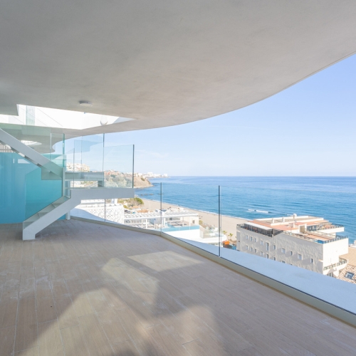 Exclusive apartment on the seafront, facing south, with impressive views of the city, coast, sea, mountains and beach. This luxurious property with 97m² interior, and 4m2 sea front terrace and an 8m2 interior patio offers a furnished and equipped kitchen, ideal for gastronomy lovers. The property has hot/cold air conditioning, fitted wardrobes, elevator and balcony.