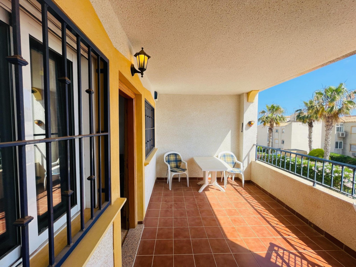The apartment is optimally located with grocery stores just around the corner and only a short walk of just under a kilometer to a multitude of pleasant restaurants, bars with live music all year round, and the beautiful Punta Prima beach.