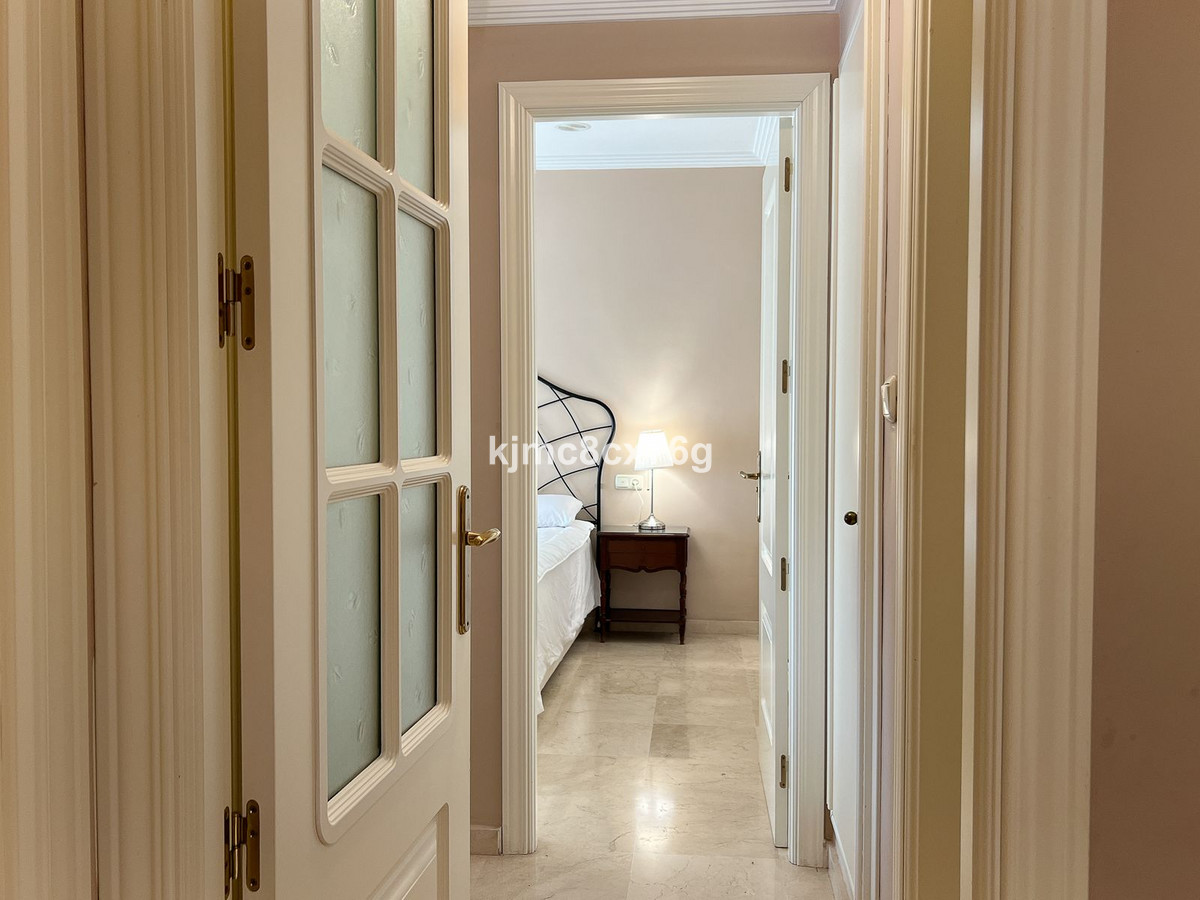 Located in a peaceful and secure development in the Las Chapas residential area of Marbella, this bright and spacious corner apartment is on the first floor, accessible by elevator.
