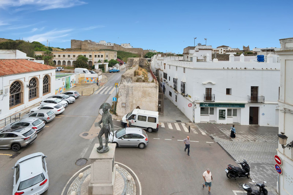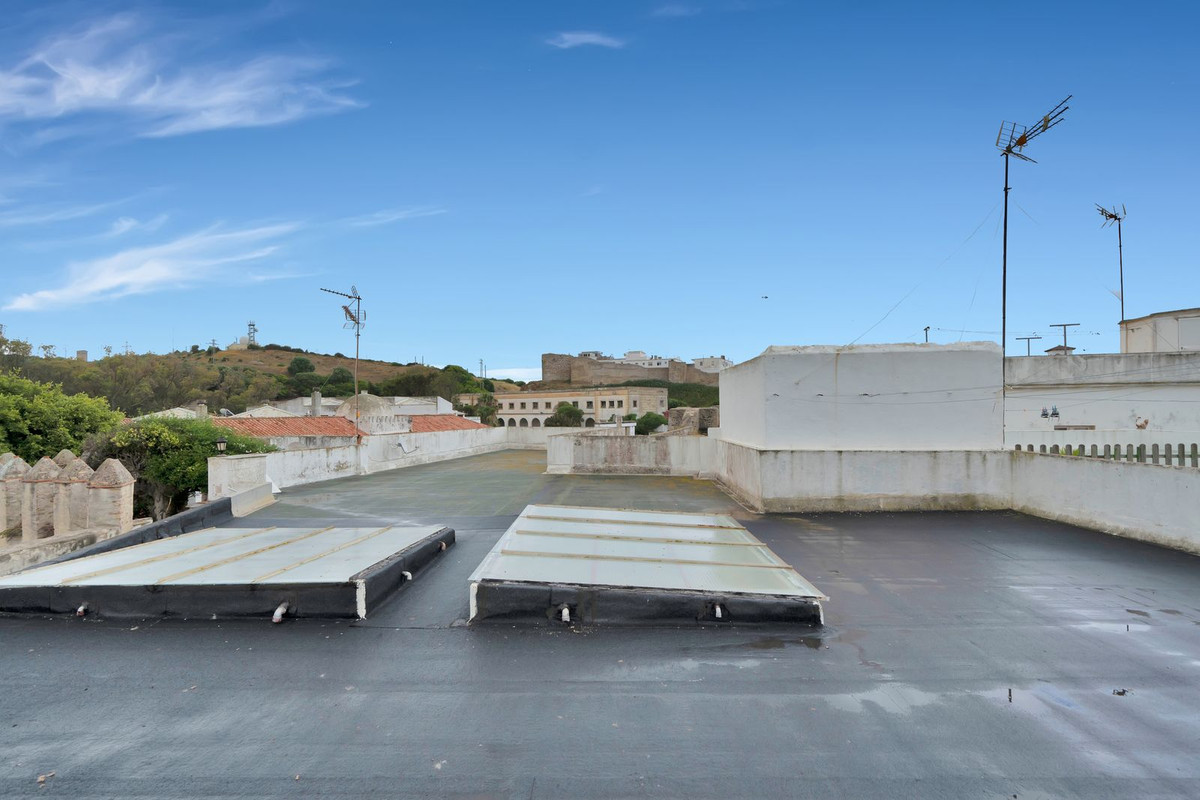 A unique property, a large corner house overlooking the plaza and with access from two streets, unique because it is located directly on the medieval wall of Tarifa, through which it has one of its entrances. Who can say that he walks along the battlements inside his own house?