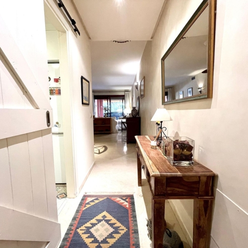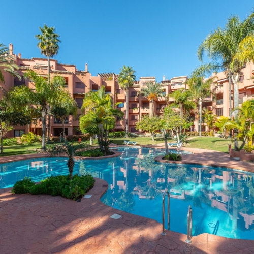 This 3 bedrooms southwest-facing ground floor apartment is located in the exclusive residential area of Los Monteros, renowned for its high security and the famous La Cabane beach club, at just 6 min walking from the most beautiful beaches. It is part of the only existing luxury apartment complex in this area, which features tropical gardens and an elegant swimming pool within a fully gated community.
