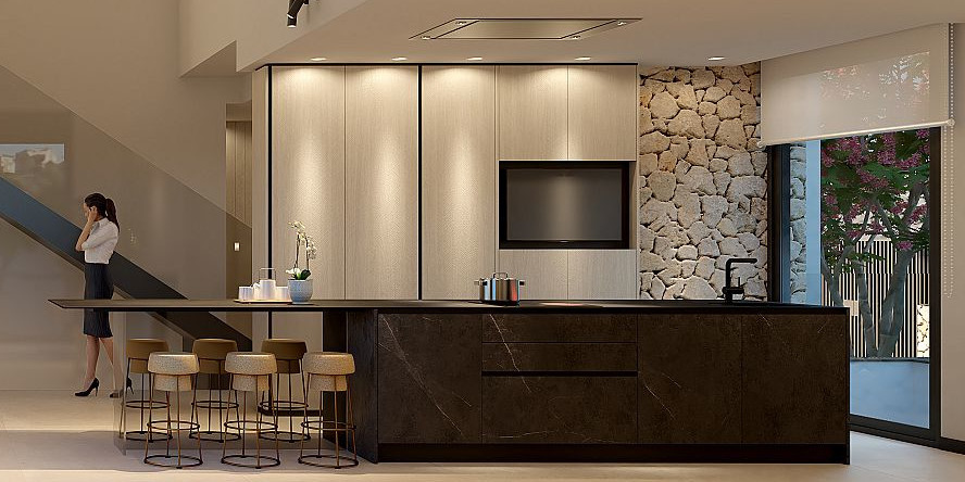 Its open kitchen is state-of-the-art, fully equipped and designed for lovers of gastronomy and comfort. In addition, the villas have air conditioning, fully equipped bathrooms with underfloor heating, home automation system and elevator (option available in the Mustique model).