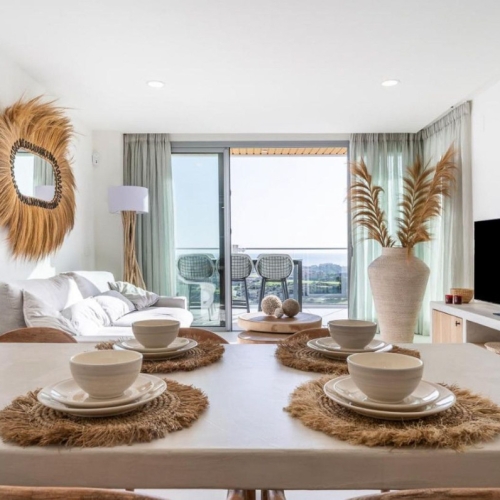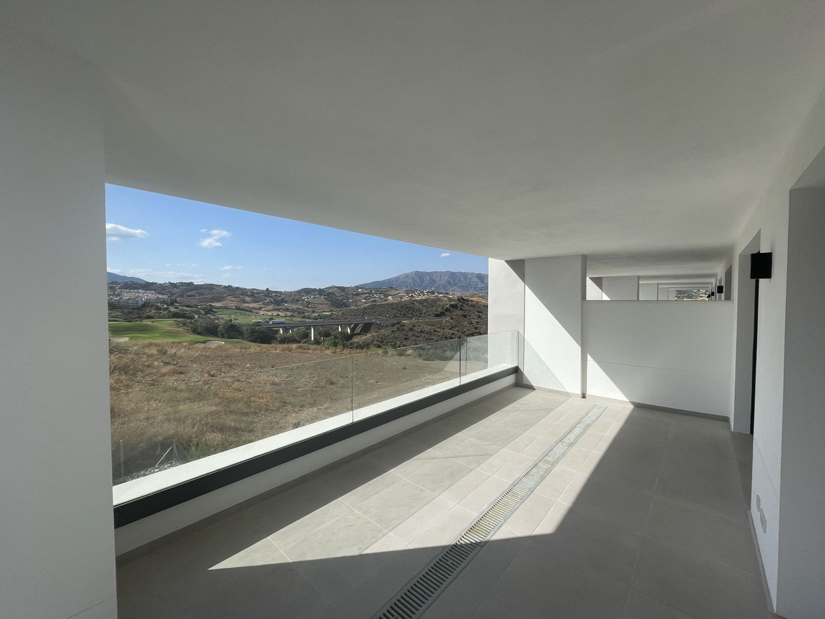 Welcome to a brand new frontline golf apartment, sitting on a picturesque hill, this remarkable property offers a captivating view of the golf course and the majestic mountains of the Sierra de Mijas beyond it. Surrounded by lush green fairways and only moments away from the sun-kissed beaches, this prime location seamlessly blends natural beauty with urban convenience.