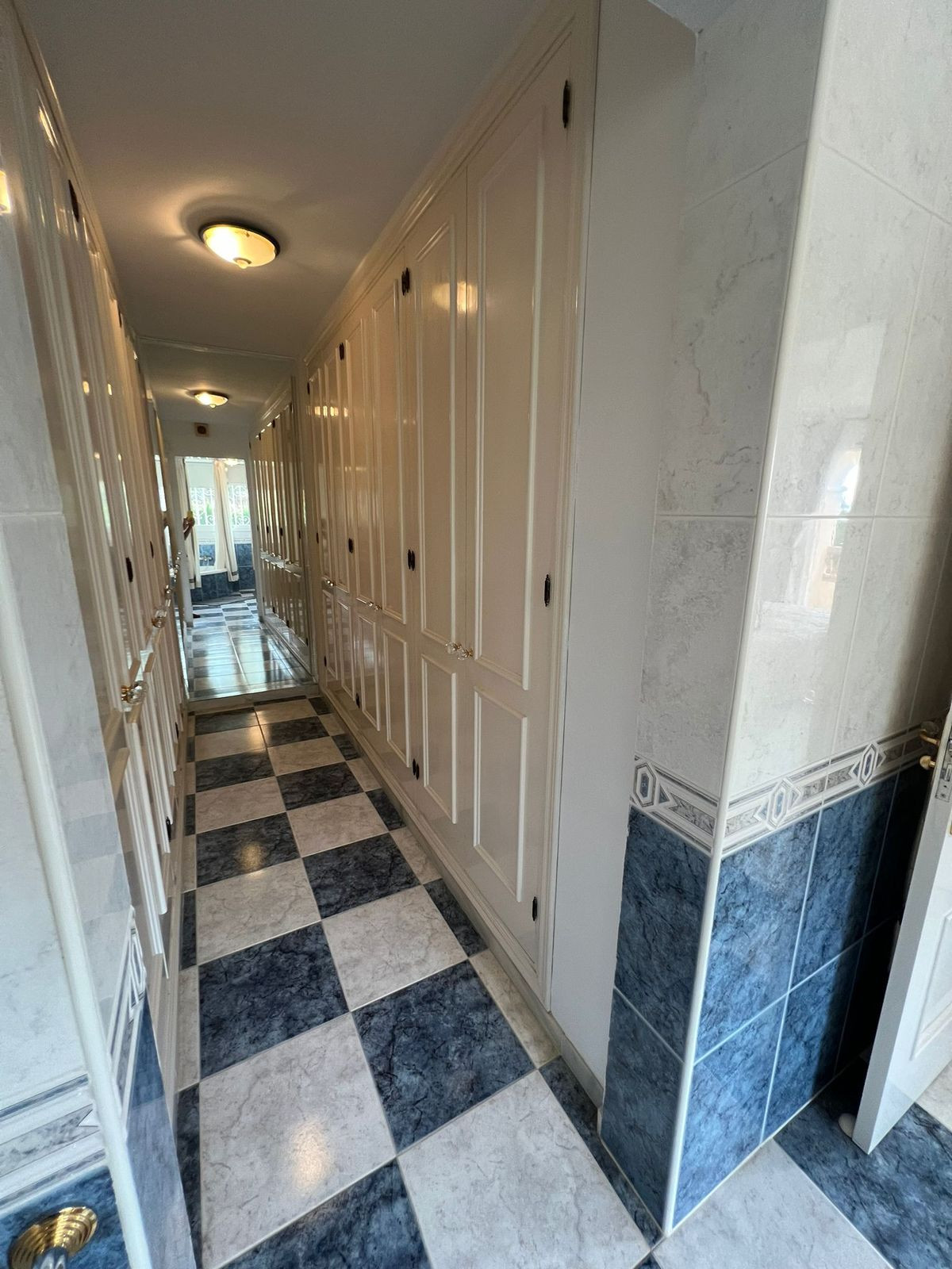 Spacious front garden presented fully tiled for ease of maintenance. Two access points to the garden and pool.