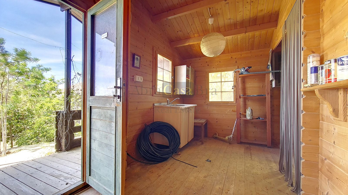The area around the villa is fenced, which is ideal if you have dogs and/or children. Above the villa is a wooden cottage of 29m2 which can be converted into an extra guest house or studio. The views over the mountains and the sea are fantastic. Most of the 8,750m2 plot with several Mediterranean trees is flat, offering good accessibility and many possibilities. There is a 20,000-litre water reservoir and its own water source.