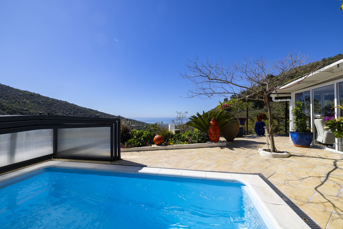 Enjoy the abundant natural light and breathtaking mountain and sea views from the various terraces surrounding the property. The beautiful private garden and covered heated pool offer an oasis of calm and a perfect place to relax during summer days.