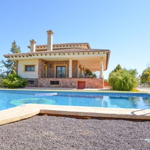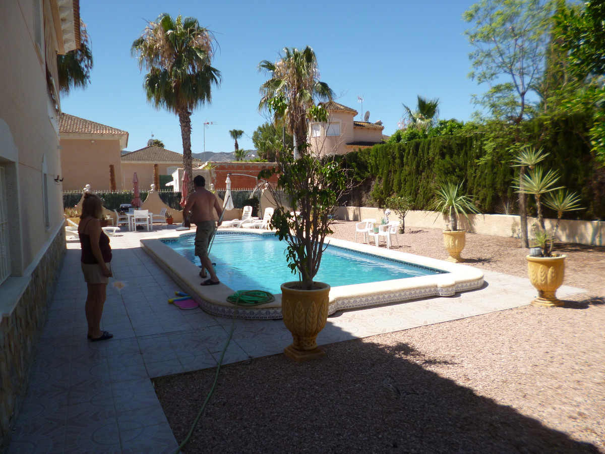 We are pleased to offer this Luxury Villa in Benferri, Orihuela, Alicante. A 4 bedroom 2 bathroom, 210m2 interior, This fabulous Villa is separated in to two self contained accommodations.Upstairs has a grand staircase to the sun balcony which wraps around half the top floor of the Villa with views of the surrounding mountains, countryside, the swimming pool and gardens. The front door entrance to the living room which is a large room with patio doors to the sun balcony on each side of the villa, one view of the driveway electric gates and garage entrance, the other the swimming pool and private gardens. The two bedrooms are very spacious with fitted wardrobes and the bathroom is fitted with a shower cubicle and bath. The kitchen is a large separate modern fitted with patio doors to the sun terrace and seating / dining area. A door to the downstairs, which has two more double bedrooms, bathroom, and a large living room / dining room with an open plan modern American style galley kitchen. The garden is entered through a large sliding doors from the living room to the private 620m2 plot and 8m x 4m swimming pool. The beautiful white sandy beaches are 40km away and many championship golf courses available with a short drive. A property perfect for holidays or permanent living with an extra income if you don't need the whole Villa.
