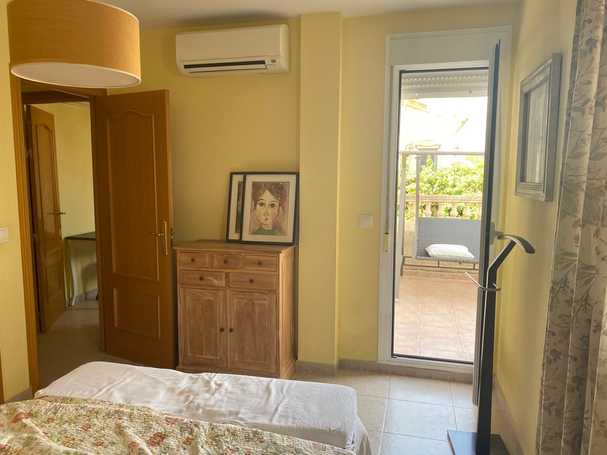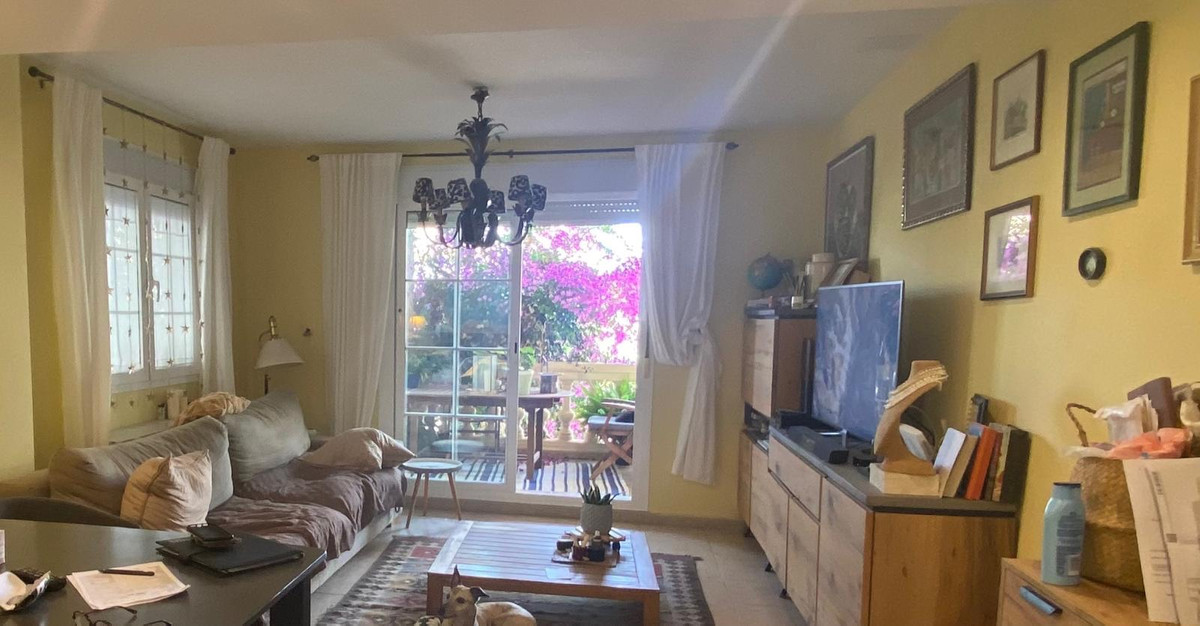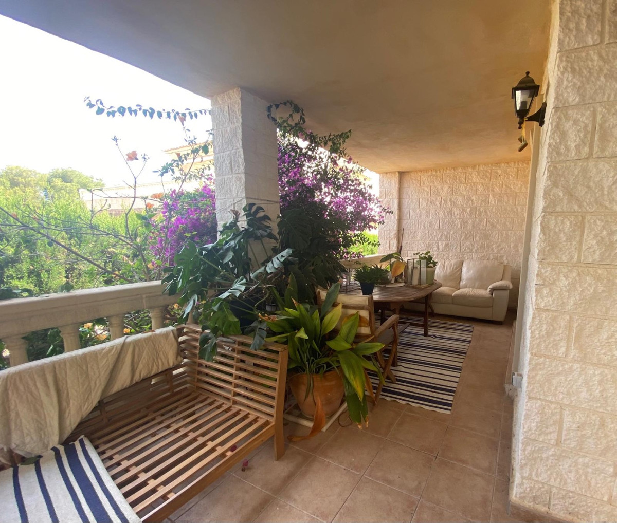 From the kitchen you walk into the spacious living/dining room and the large French doors give you access to the beautiful, spacious veranda. Stairs lead down to the back garden, which gives you access to the communal pool through the back gate.