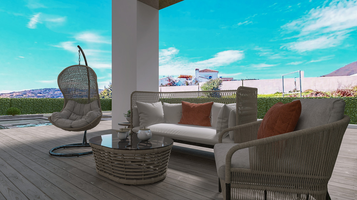 A stunning private pool of 50 m² and a jacuzzi. Additionally, there is the option to include an elegant skybar to enjoy the stunning views (at an additional cost).