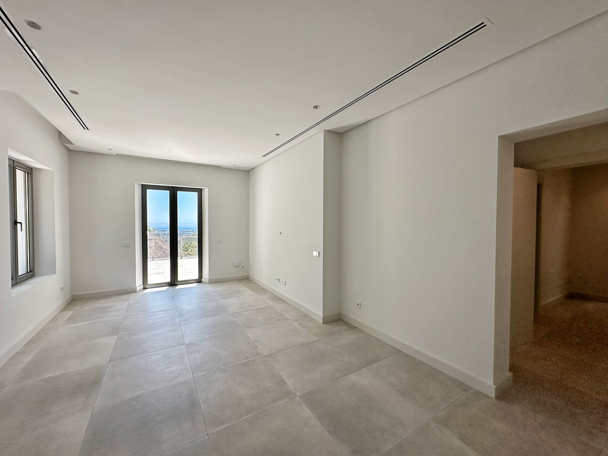 As you enter, you'll be greeted by a grand entrance hall leading to a spacious open-concept living room, an elegant dining area, and an oversized kitchen. Additionally, a stunning double-height office space provides a perfect work environment, all while enjoying unobstructed views of the El Madroñal mountains and the Mediterranean Sea.
