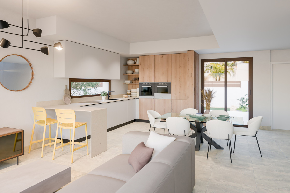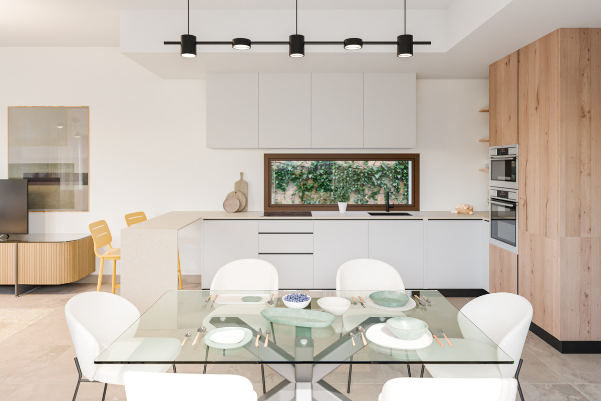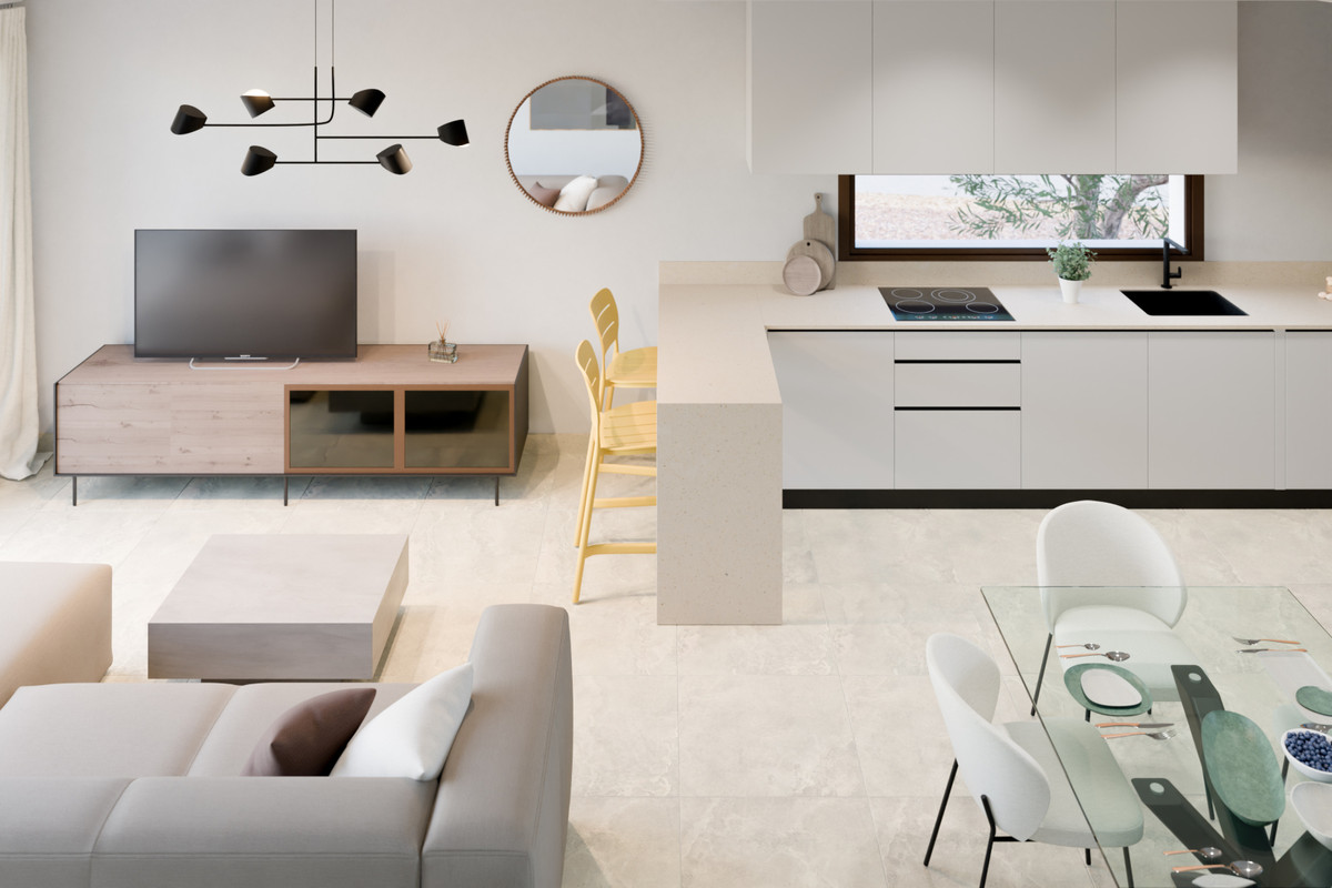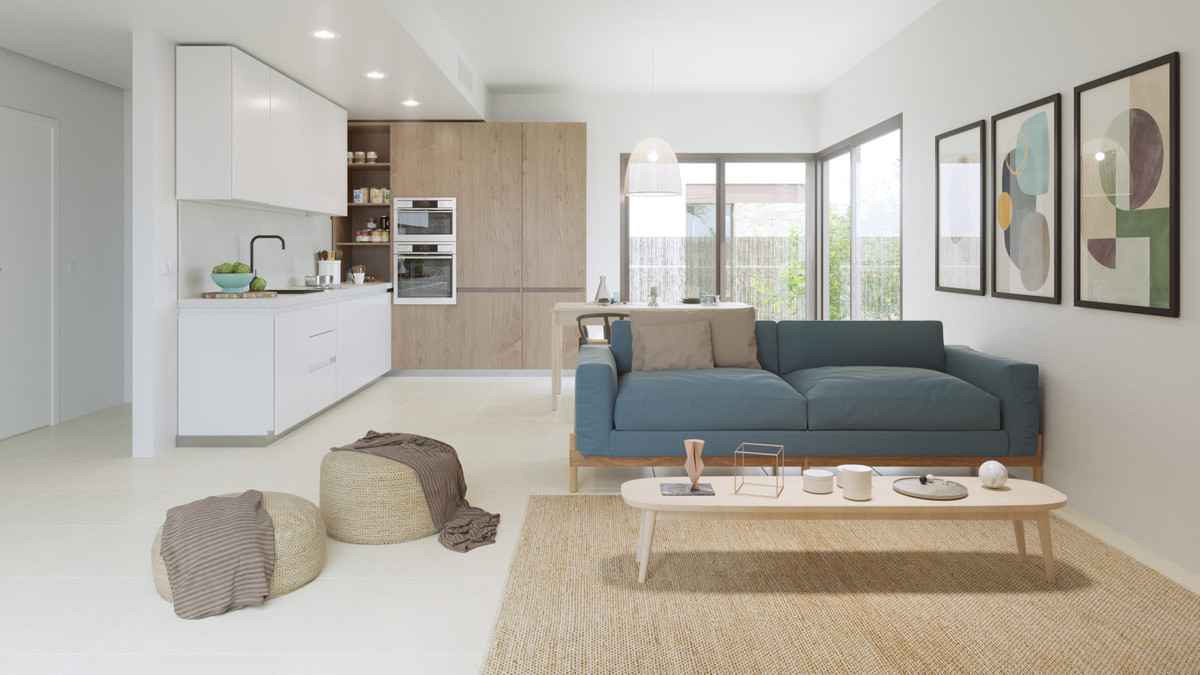 Villas Toulouse: These homes feature 3 bedrooms and 2 baths in a charming single-level design. The open-plan living-dining-kitchen area is exceptionally welcoming and harmonizes perfectly with the natural and bright surroundings typical of our villas.