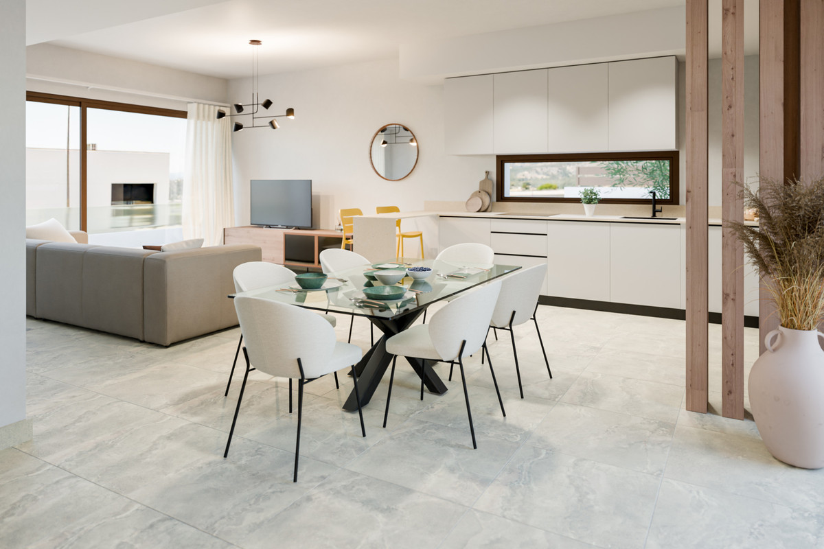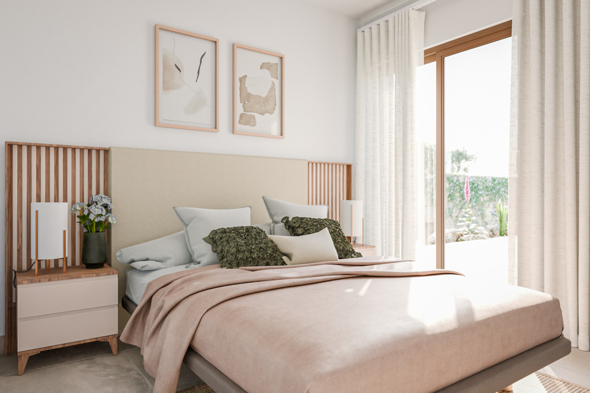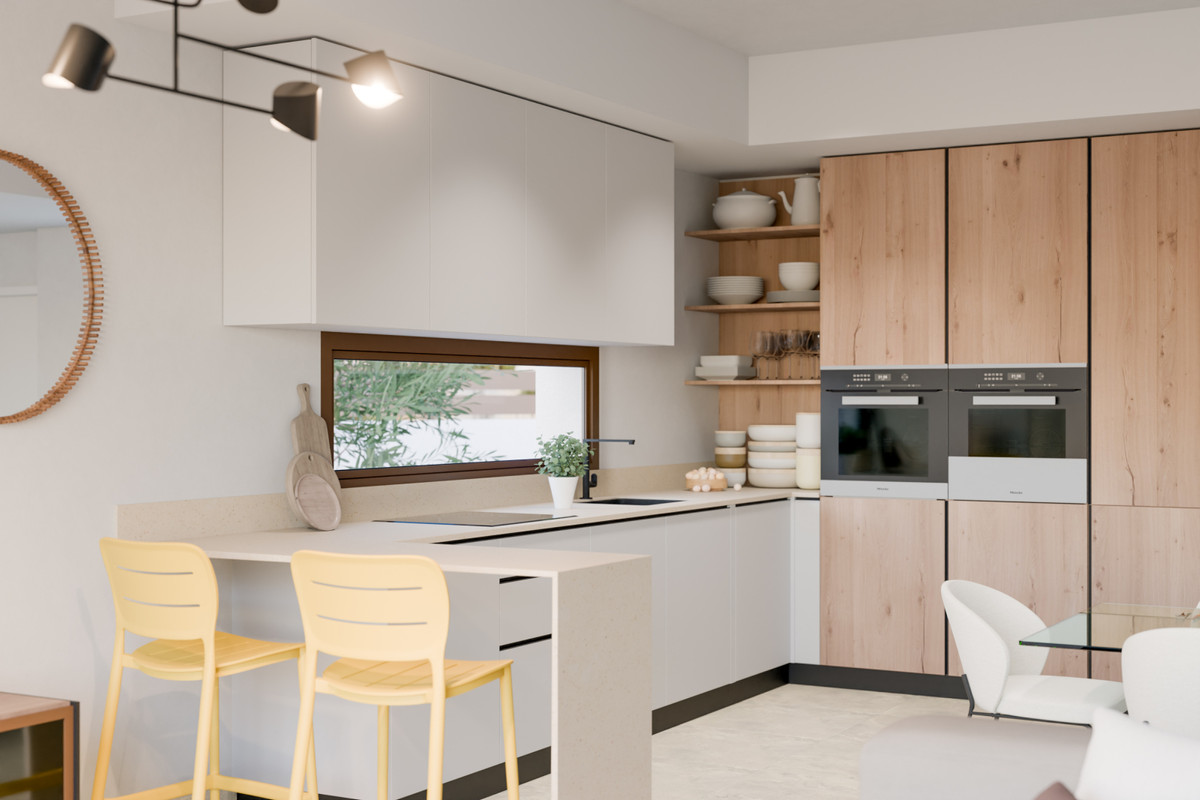 Villas Toulouse: These homes feature 3 bedrooms and 2 baths in a charming single-level design. The open-plan living-dining-kitchen area is exceptionally welcoming and harmonizes perfectly with the natural and bright surroundings typical of our villas.