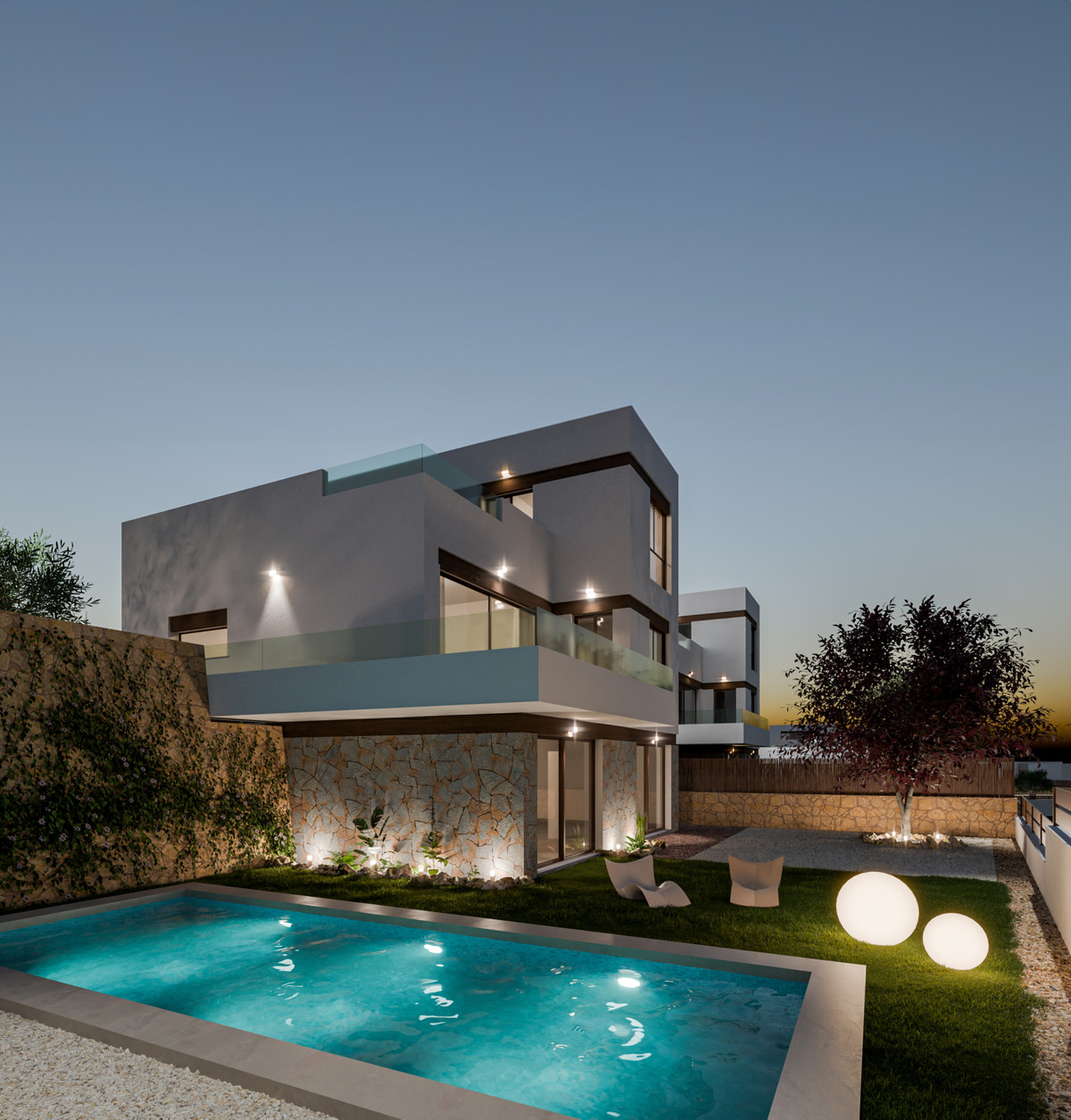 These detached villas are located on a privileged spot, few meters walking distance from the Alfarella golf course, one of the most exclusive Costa Blanca golf courses.