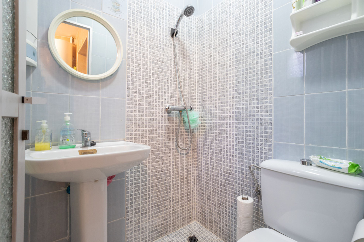 One floor up there are two more bedrooms and a bathroom. Both bedrooms have pleasant locations and pleasant light flows, they also have space for beds and bedside tables. The shared bathroom is equipped with a toilet, sink and shower.