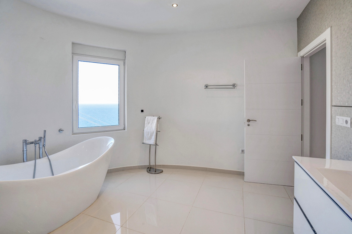 There are five double bedroom suites, all with sea views. The vast living area is both modern and practical, with an American-style full equipped open kitchen, sitting and dining areas.