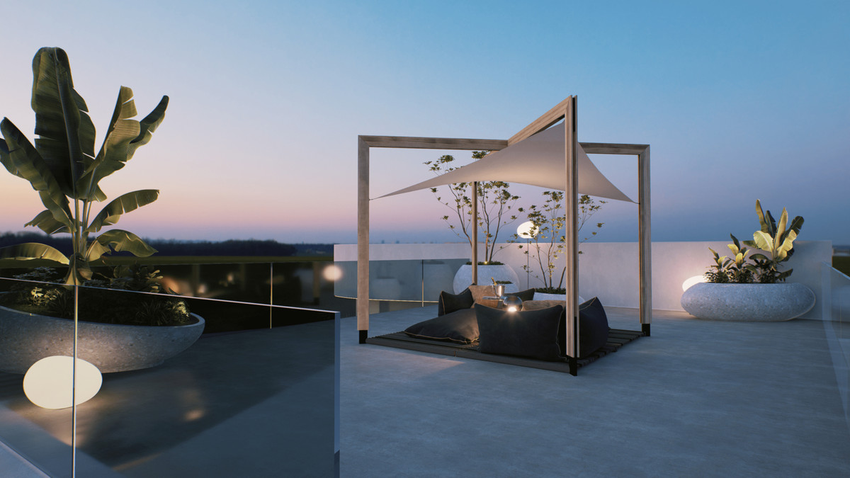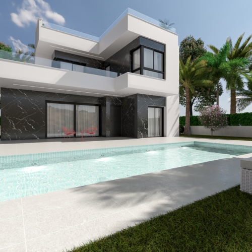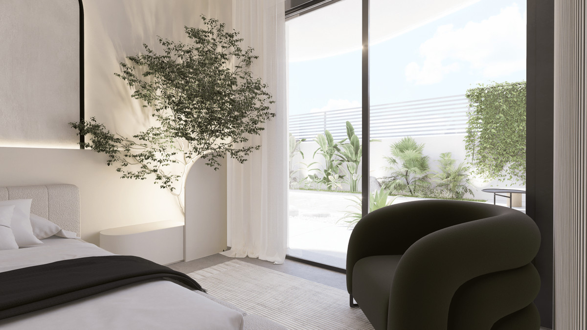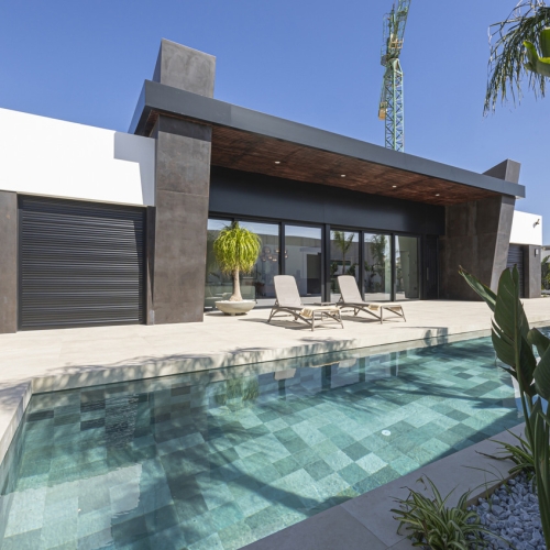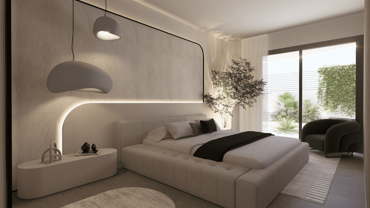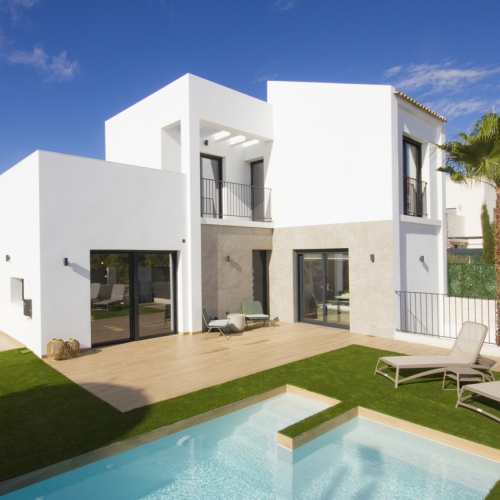 The design of the villas is optimally orientated to enjoy a pleasant temperature all year round, with an L-shape that allows practically the entire house to have views and access to the spacious and luxurious garden.