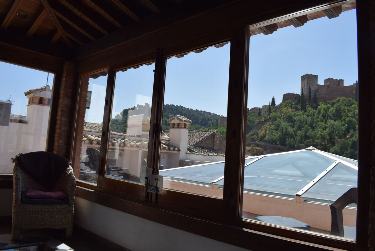 With turistic licence ! City Palace, Granada historic centre with view at the Alhambra, Costa Tropical.