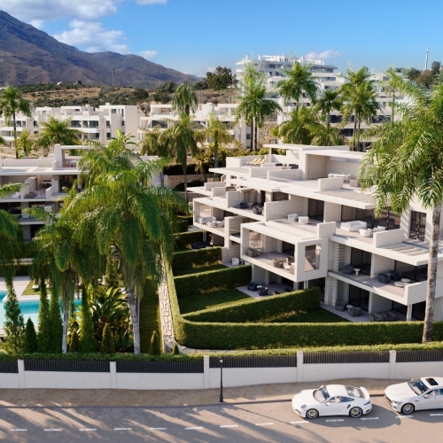 Apartment for sale in Nueva Atalaya, Estepona with 3 bedrooms, 2 bathrooms, 1 on suite bathroom and with orientation west, with communal swimming pool, private garage (2 parking spaces) and communal garden. Regarding property dimensions, it has 122 m² built, 115 m² interior and 78 m² terrace. Has the following facilities front line golf, mountainside, amenities near, air conditioning, central heating, fully fitted kitchen, marble floors, satellite tv, storage room, gym, alarm, security entrance, double glazing, video entrance, dining room, barbecue, security service 24h, private terrace, kitchen equipped, living room, country view, mountain view, golf view, heated pool, automatic irrigation system, security shutters, internet - wi-fi, covered terrace, 24h service, electric blinds, fitted wardrobes, gated community, lift, garden view, panoramic view, doorman, close to children playground, close to sea / beach, close to golf, uncovered terrace, glass doors, balcony, excellent condition, urban view, ceiling cooling system, ceiling heating system, close to shops, close to town, close to port, close to schools, surveillance cameras, inside golf resort and pets allowed.