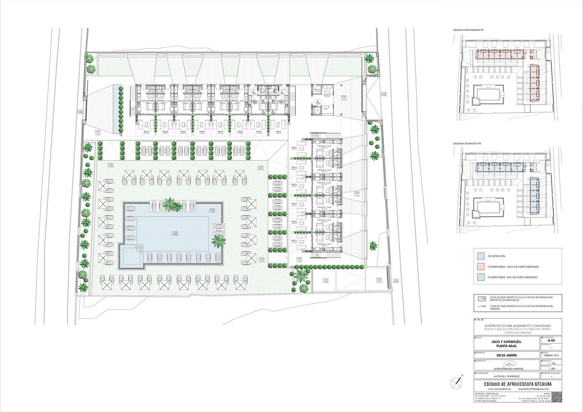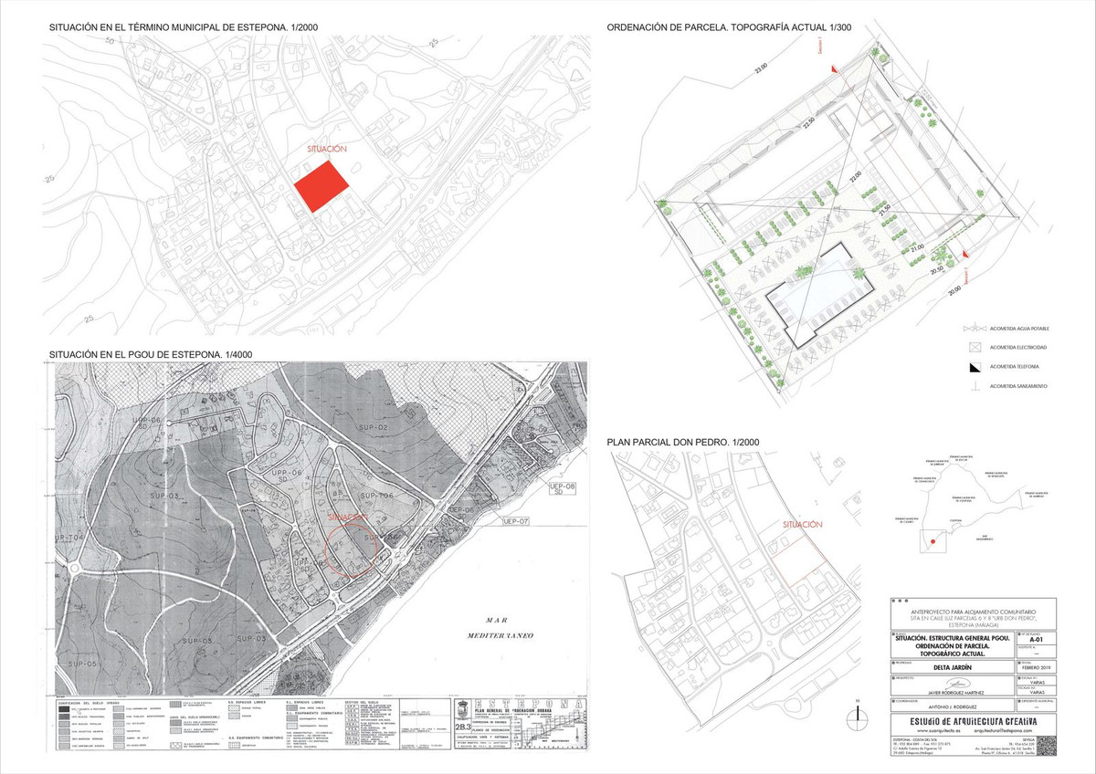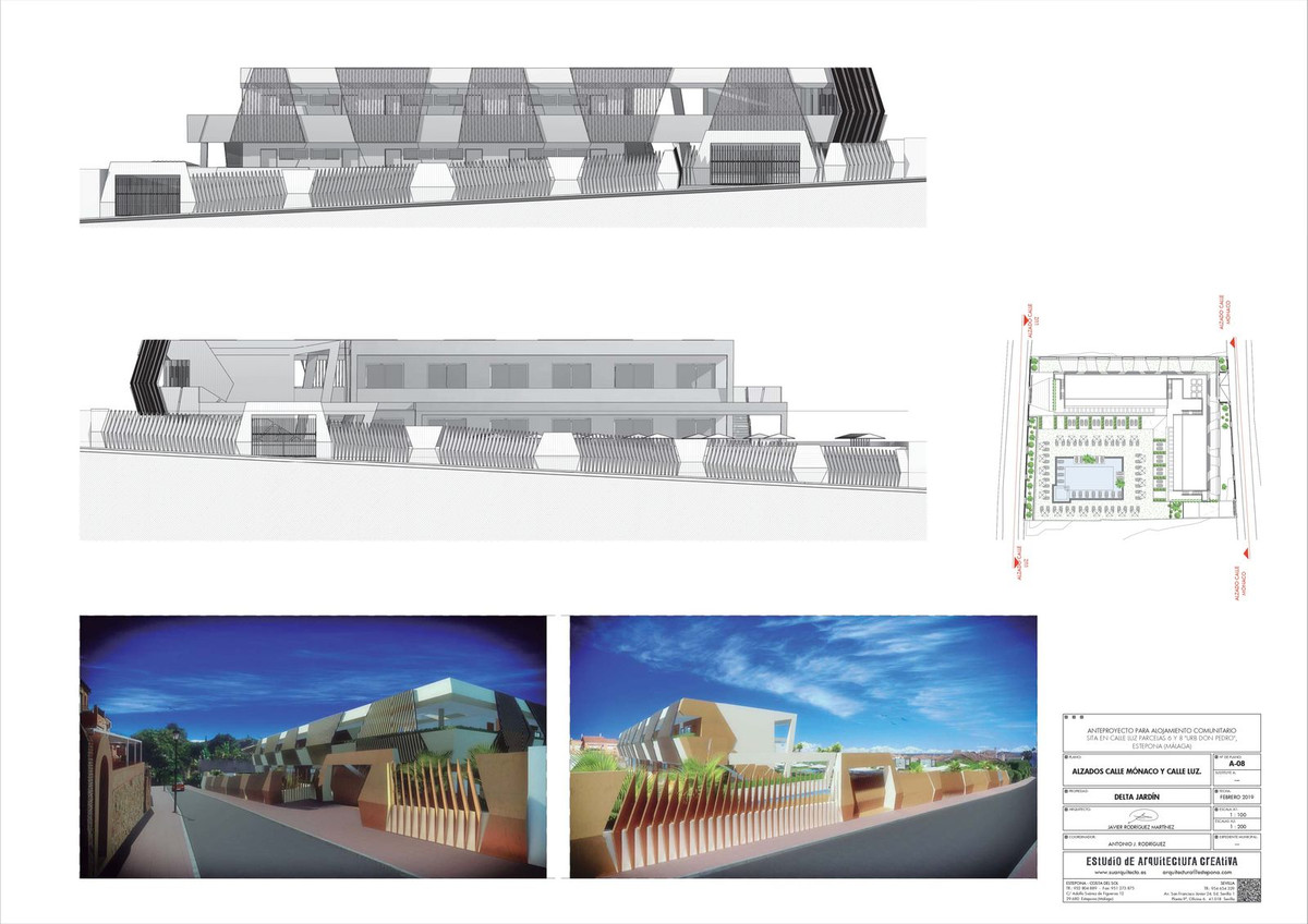 Unique project of an exclusive aparthotel in Estepona located on the plot of 3434m2. Possible to built an aparthotel of 838m2 with 2 storeys, 28 apartments, restaurant, swimming pool and underground parking.