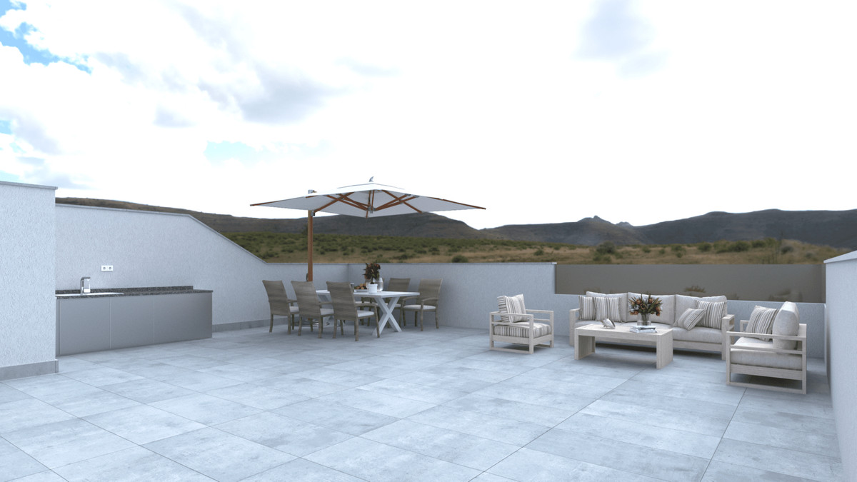 The development is a magnificent complex made up of 3 townhouses and 2 villas with 4 bedrooms and 3/2 bathrooms with a choice of 3 bigger bedrooms, private swimming pool and solarium with Summer kitchen to enjoy all hours of sunshine every day of the year.