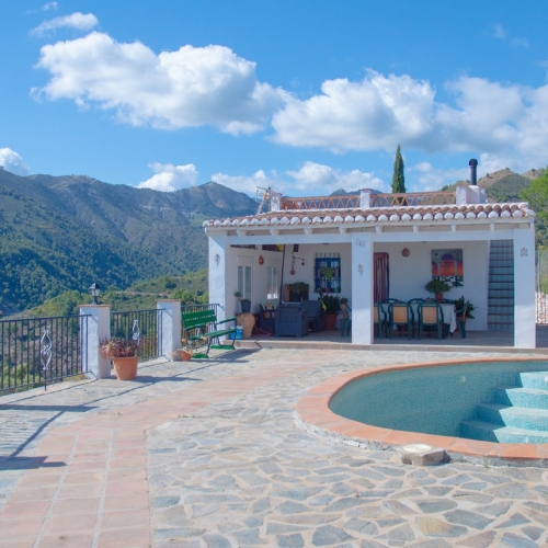Stunning Villa Below Frigiliana for Sale. This impressive villa, nestled below Frigiliana, offers two separate living units across two floors, each with its own driveway and privacy. The upper unit spans 150 m2 and features a spacious open-plan living and dining area with an adjoining kitchen and convenient storage space. From the terrace, enjoy breathtaking views of the surrounding mountains. A standout feature of this apartment is the rotating fireplace in the living room, adding warmth and ambiance. Additionally, the terrace accommodates a fitness room. Another highlight is the luxurious bathtub in the living room, perfect for relaxing moments. The unit comprises three spacious bedrooms, two bathrooms (one en-suite in the master bedroom), and a guest toilet. The lower unit includes a cozy living and dining area with a kitchen, one bedroom, and a bathroom, totaling 80 m2 of living space. The entire house is equipped with underfloor heating, air conditioning, and a central vacuum system, built to the highest German standards with excellent insulation and quality materials. A solar panel system on the roof provides heating and hot water. The outdoor area of this exceptional villa leaves nothing to be desired. There is a heated saltwater pool with an easy-to-operate cover, a relaxing jacuzzi, and a fully equipped outdoor kitchen with a sauna. Additionally, there is a workshop, a caravan, and another small building at the foot of the property. The 6000 m2 plot is adorned with numerous fruit trees, inviting nature lovers to linger. The villa boasts good connectivity and is perfect for those who appreciate a tranquil lifestyle amidst nature. Experience luxurious living in a breathtaking location your new home below Frigiliana awaits! We are pleased to be able to present this dream property to you soon, either personally or via virtual viewing. Because this world is unique - just like our Axarquía. In Andalusia. On the Costa del Sol. Here, on the sunny side of life...
