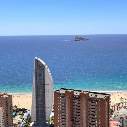 Latest Luxury Apartments in InTempo Building Ponente beach BenidormA Unique Opportunity. A Unique Experience. A Unique Investment.Introducing the tallest residential building in Spain and the second tallest in the European Union: the InTempo Building. Standing at 198 meters high with 47 floors and 256 homes, it offers an unparalleled living experience.For Sale: Luxury Apartments on the 15th FloorThis emblematic building in Benidorm features corner apartments with 2 bedrooms, 2 bathrooms, a living room, an equipped kitchen, terraces with stunning sea views, and an underground parking space included in the price.Exceptional Quality and FeaturesEach apartment is built with the highest quality materials and finishes, including:- Hot/cold air conditioning- Underfloor heating in bathrooms- Lacquered aluminum exterior carpentry with low solar factor double glazing- Fully equipped kitchen with appliances- Armored main door- LED lighting- Video intercom systemExclusive AmenitiesThe InTempo building boasts 6,500 m² of common areas, offering exclusive services such as:- Concierge and 24-hour security- 3 high-speed elevators- Children's play areas- Gym and fitness room- Sky wellness area- Sauna and massage rooms- Indoor pool with panoramic views- Outdoor swimming pools- Solarium terraces with jacuzzis- Terrace bar and restaurant- Underground parking- Community Wi-Fi networkPrime LocationLocated just 200 meters from the magnificent Poniente Beach in Benidorm, the InTempo building is surrounded by a variety of services and shopping centers. It is also well connected by road, with quick access to the A7 highway that runs along the Mediterranean coast, and by TRAM, providing easy access to the entire province of Alicante.Don't miss this opportunity to own a luxury apartment in one of the most iconic buildings in Spain.